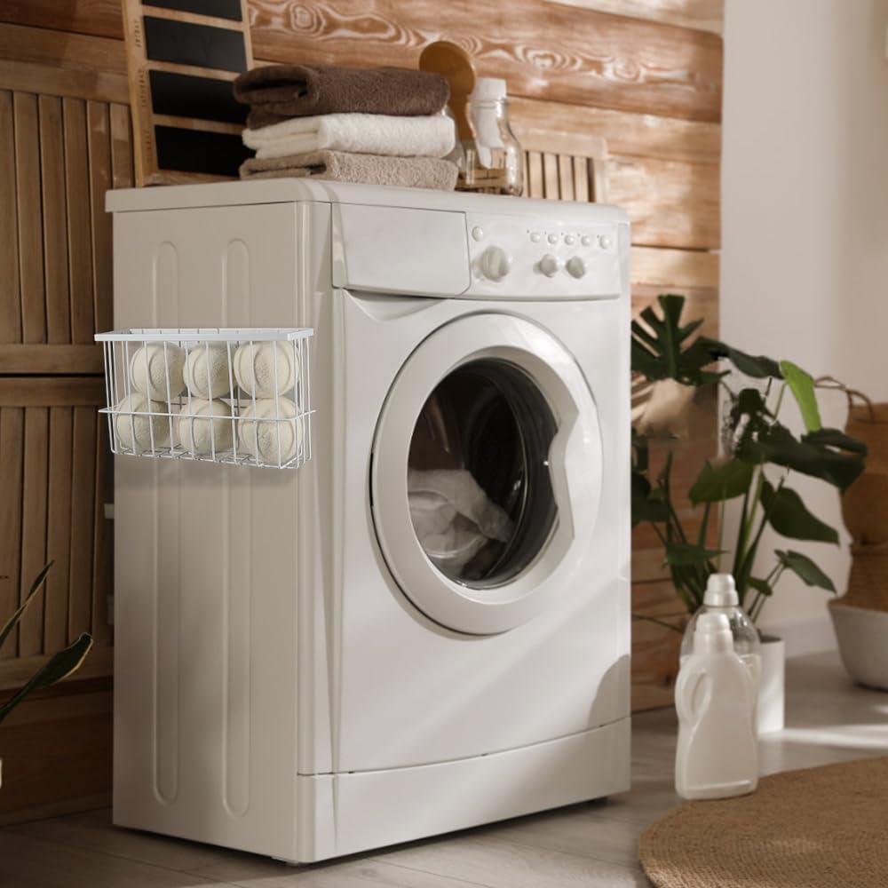 Picowe Large Dryer Ball Organizer Magnetic Storage Bin, Magnetic Basket Dryer Ball Holder for Laundry Room Organization and Storage to Hold 6 Dryer Balls, Without Balls (White, L )
