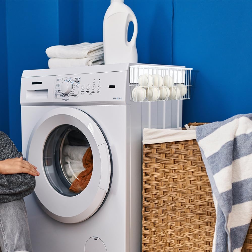Picowe Extra Large Dryer Ball Organizer Magnetic Storage Bin, Magnetic Basket Dryer Ball Holder for Laundry Room Organization and Storage to Hold 10 Plus Dryer Balls, Without Balls (White, XL )