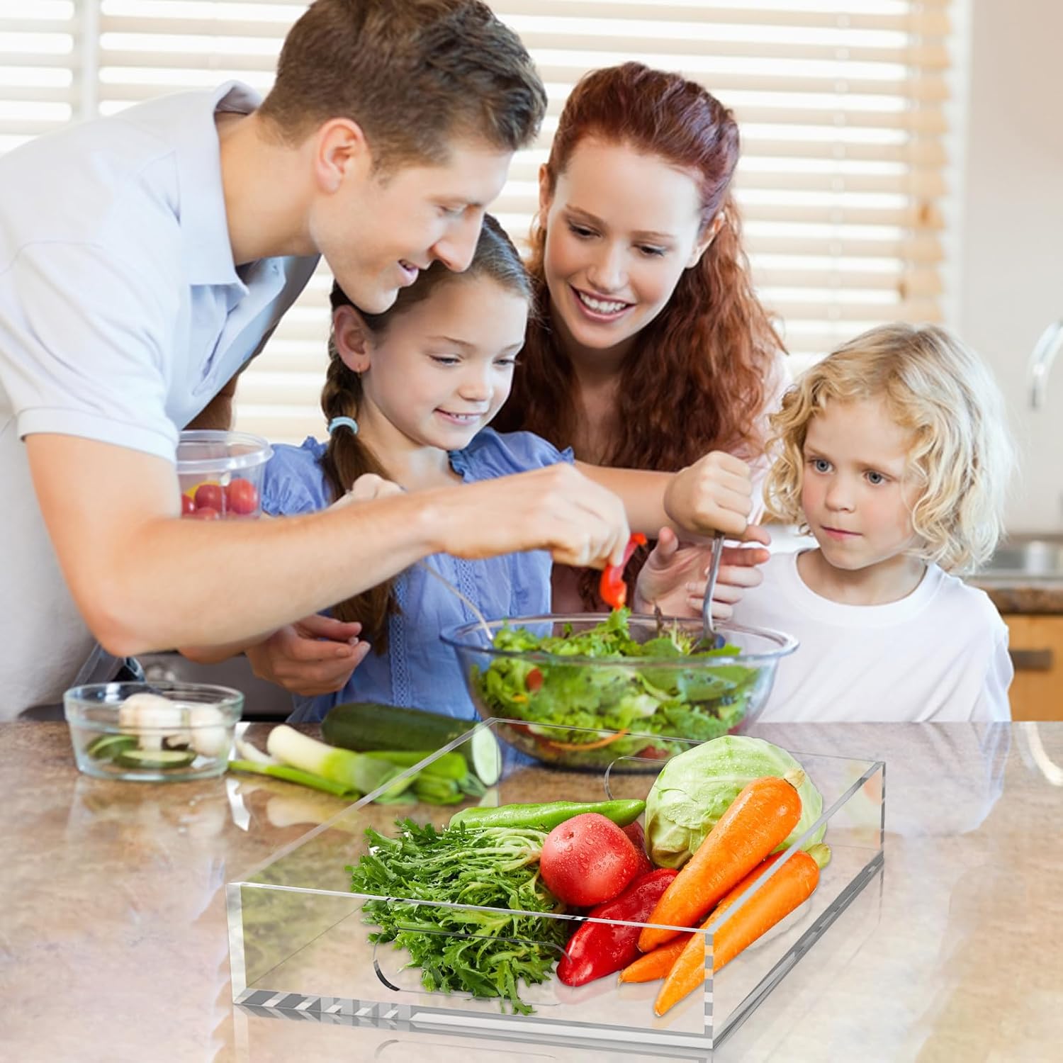 Acrylic Serving Tray with Handles - Lucite Organizer for Bench, Coffee Table, Countertop, Kitchen, Bathroom, Living Room, Powder Room