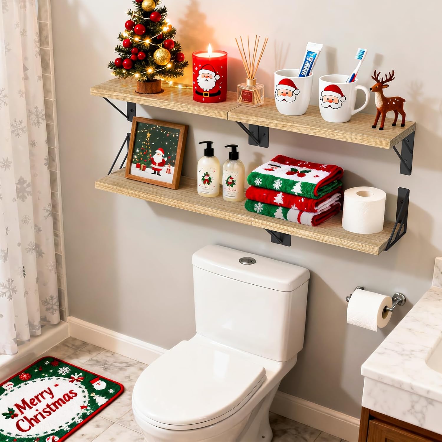 - Organize your space with our wall mounted shelves. These carbonized brown shelves are perfect for bedrooms, bathrooms, or living rooms. With their sleek design and easy installation, they are ideal for any room, providing both practicality and a stylish touch