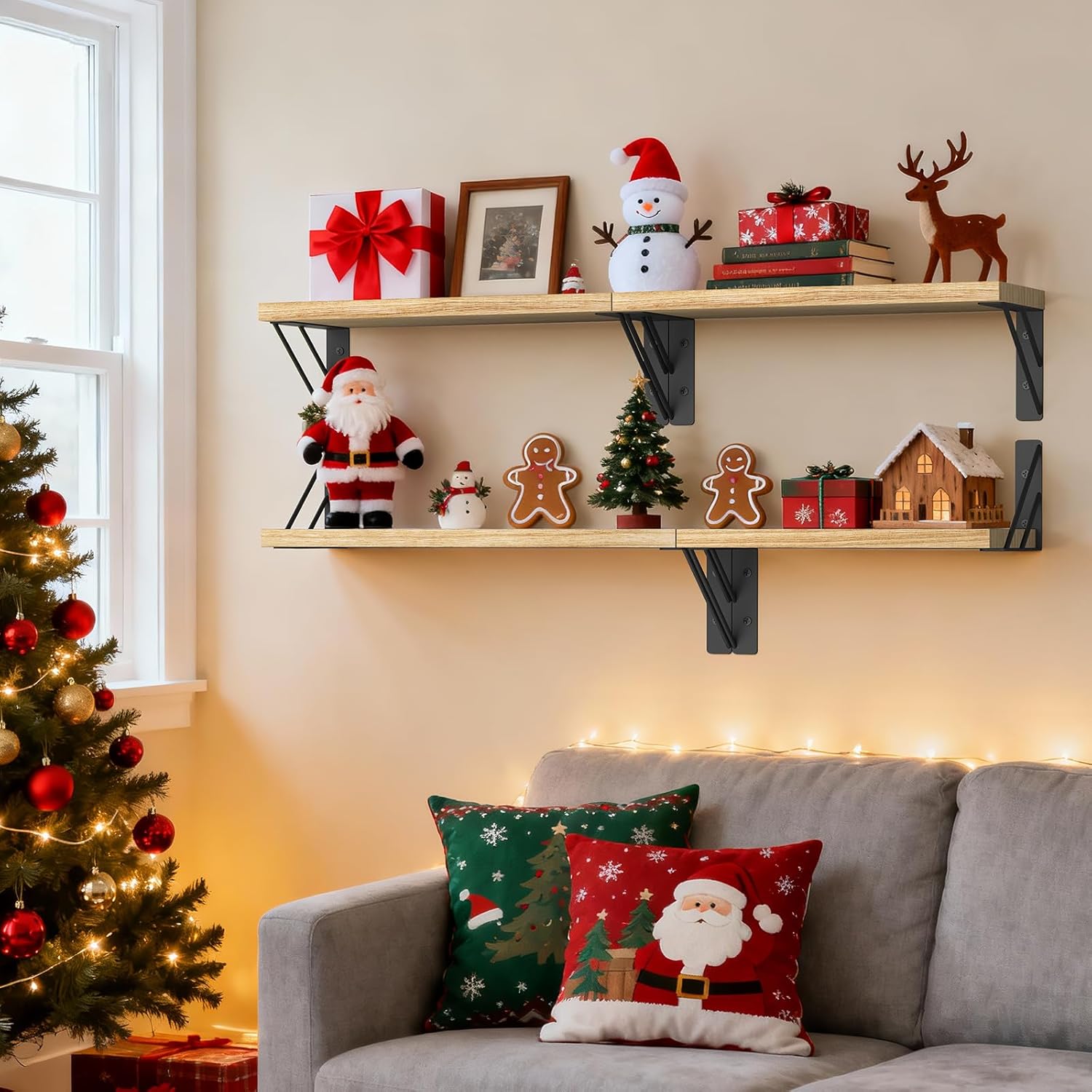- Create a stylish display with our rustic wall-mounted shelves. Perfect to display decor, these offer ample space for books, decor, and more. The carbonized brown finish makes them a versatile addition to any room, enhancing your overall decor