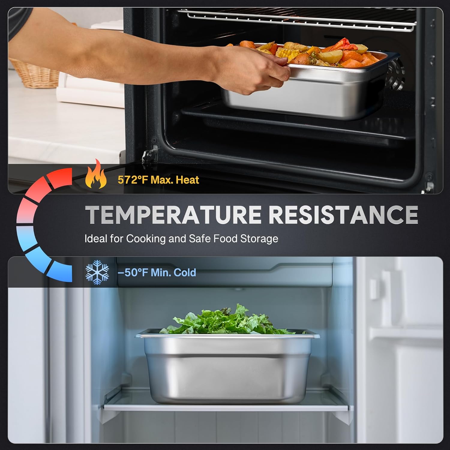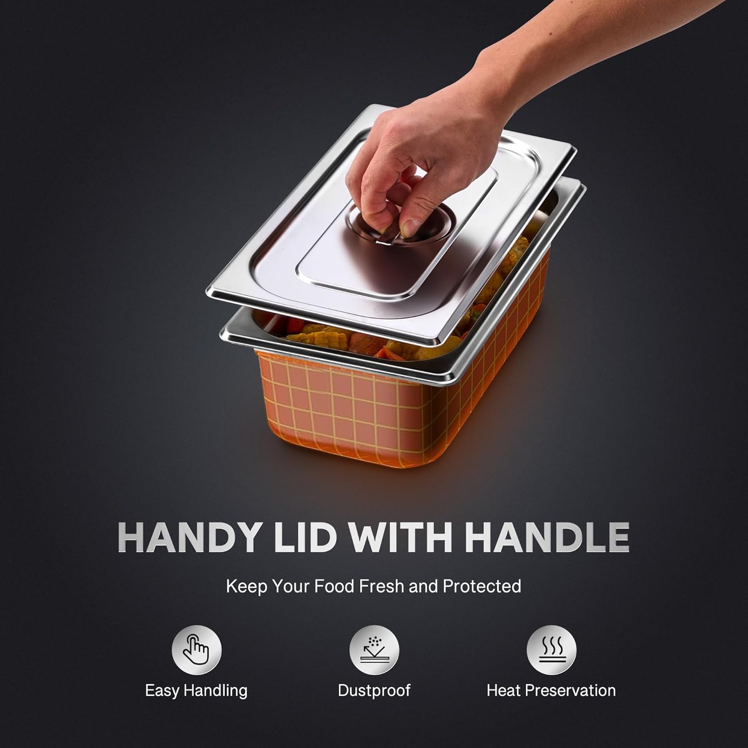 - Durable and Safe Design: With curved edges that protect your hands and reinforced corners for extra strength, these stainless steel pans with lids are built to withstand daily use, making them the dependable choice for any home or commercial kitchen