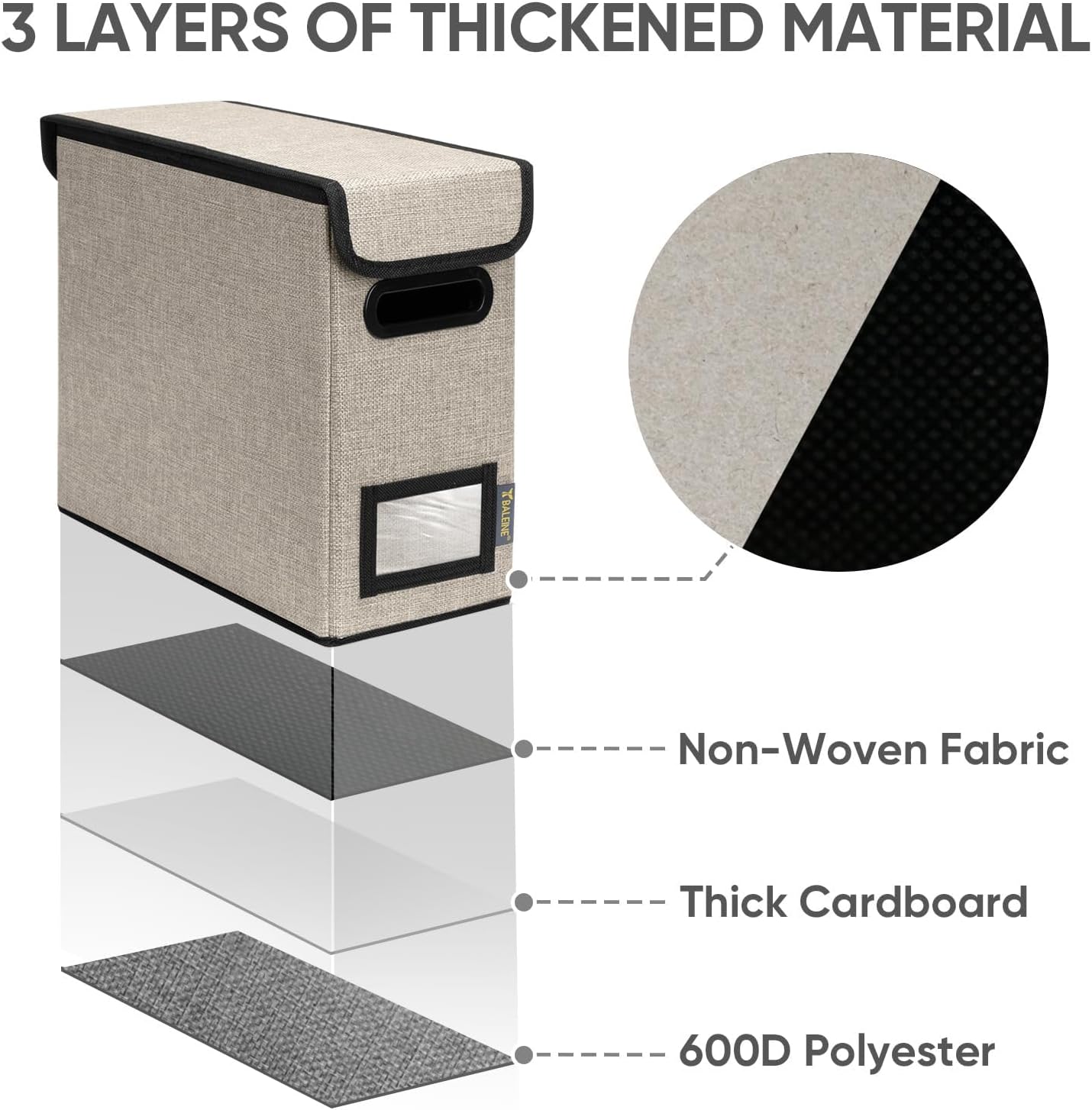 - [DURABLE MATERIAL] The outer layer of our filing box is crafted from high-quality polyester fabric and reinforced with thick cardboard in the middle. This construction ensures that the box maintains its shape and provides better bearing capacity for important documents and files. Its textured appearance can also serve as a stylish decorative element in any office or home