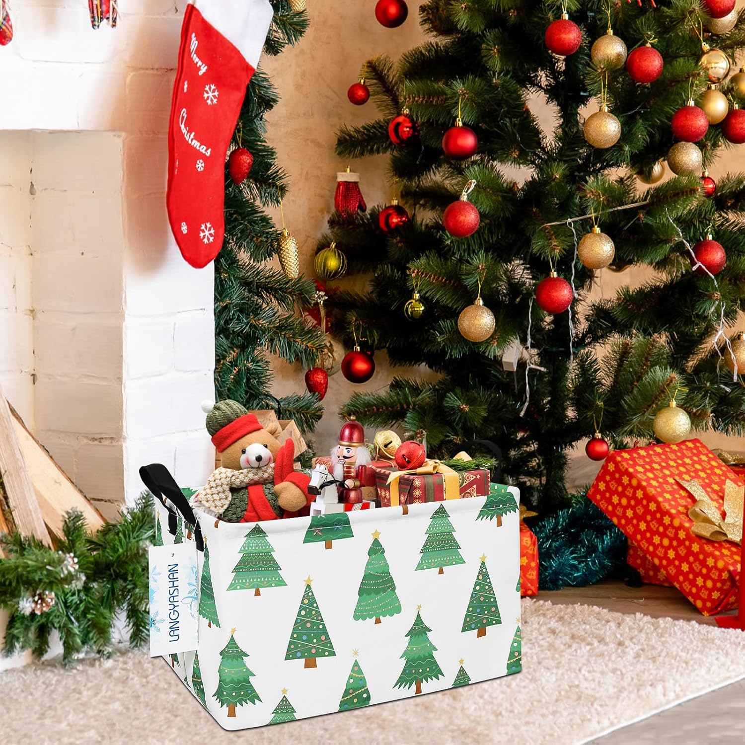 LANGYASHAN Rectangular Storage Bin Collapse Canvas Fabric Cartoon Storage Basket with Handles for Organizing Home Kitchen Boys and Girls Toys Office Closet Shelf Baskets (Rec christmas tree)