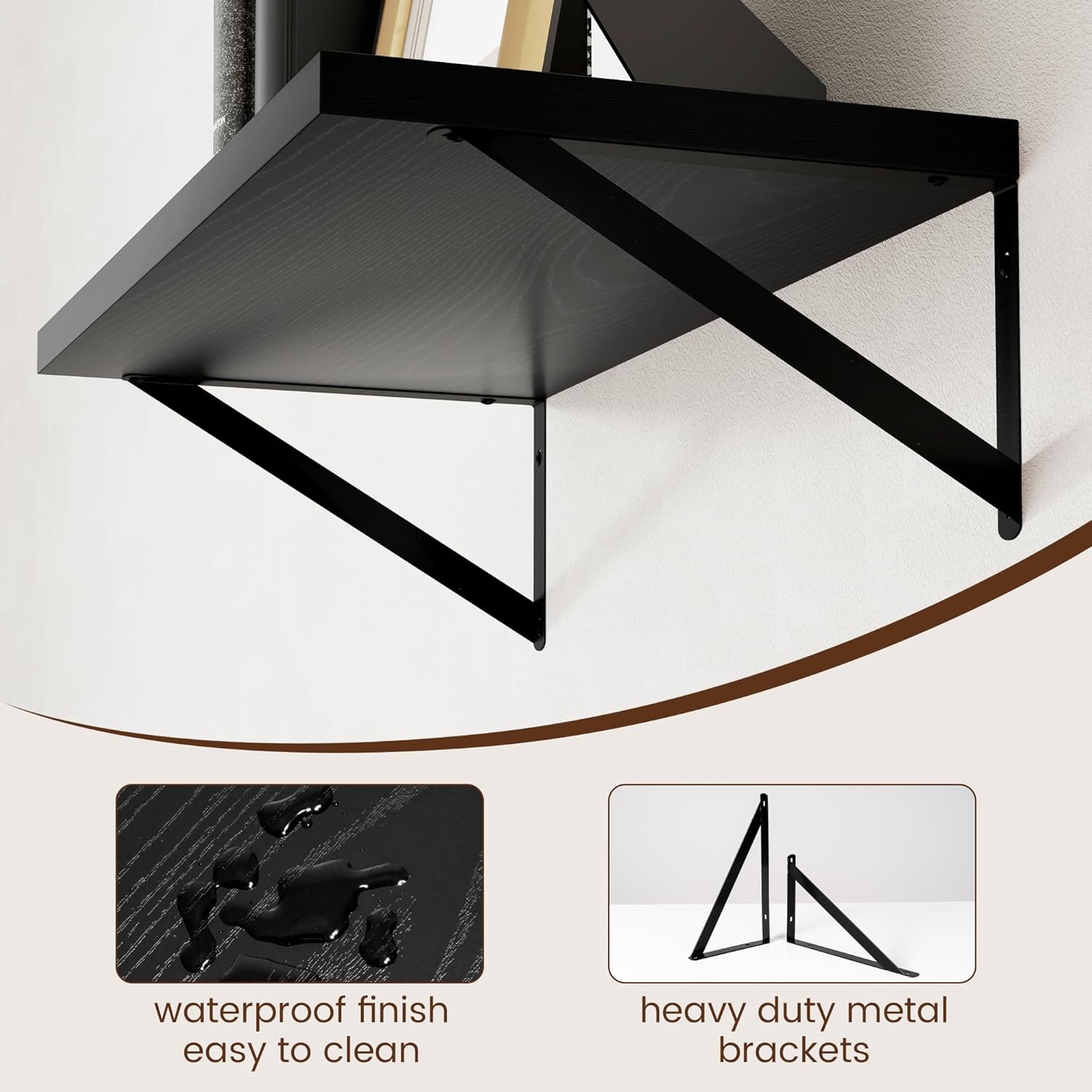 Axeman Floating Shelves for Wall Black- 24 Inch Wide x 12 Inch Deep Wall Shelves Set of 2 - Black Deep Wood Floating Shelves for Living Room Bedroom Laundry Room