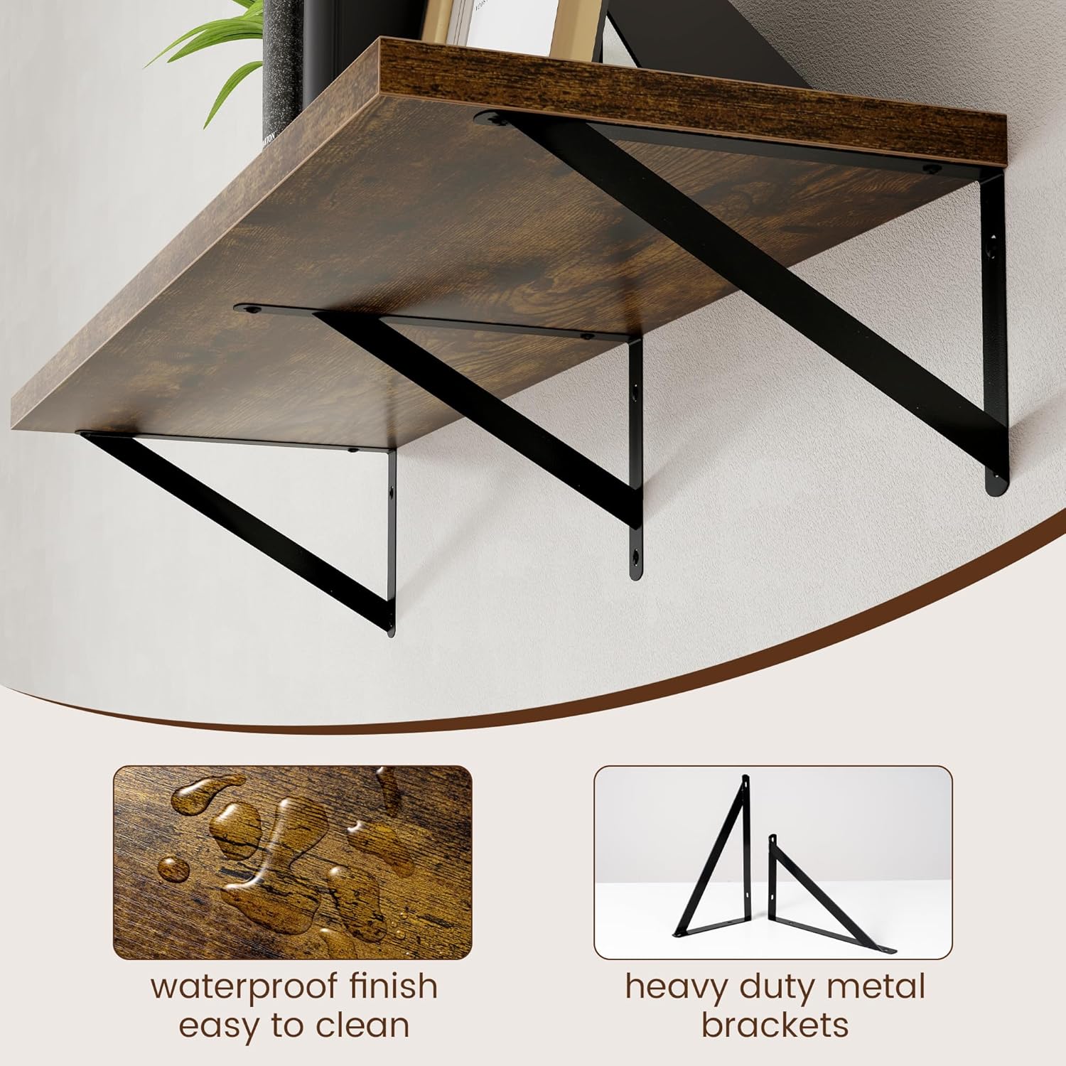 - Heavy Duty Floating Shelves - Axeman deep shelves are made of hardwood with a surface that is easy to clean and maintain. The heavy-duty triangular metal brackets provide strong and stable support for the board effortlessly