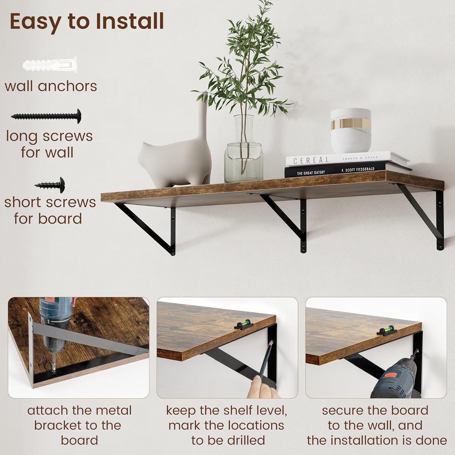 - Deep Floating Shelves - Measuring 36 inches wide and 12 inches deep, our wall shelves are widened to add additional storage and display space, perfect for use as bookshelves or floating nightstands