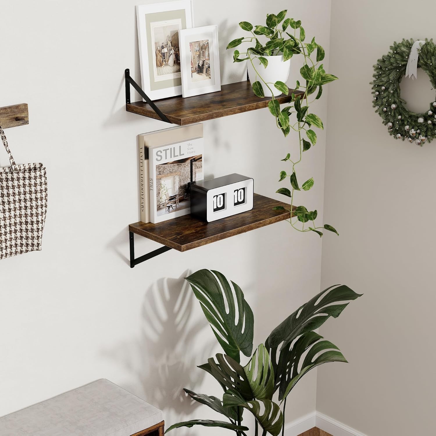 - Deep Floating Shelves - Measuring 24 inches wide and 12 inches deep, our wall shelves are widened to add additional storage and display space, perfect for use as bookshelves or floating nightstands