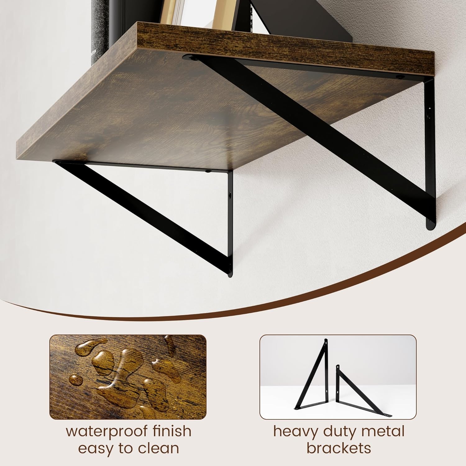 - Heavy Duty Floating Shelves - Axeman deep shelves are made of hardwood with a surface that is easy to clean and maintain. The heavy-duty triangular metal brackets provide strong and stable support for the board effortlessly