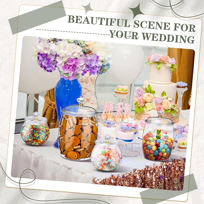 - Package Content: this pack includes 4 clear jars with lids; Each candy storage jar comes with a lid, making it ideal for those who frequently bake or entertain; The pack efficiently accommodates assorted goodies, enough quantity to meet your various requirements; Note: this product is made of plastic; Please confirm the material before purchasing