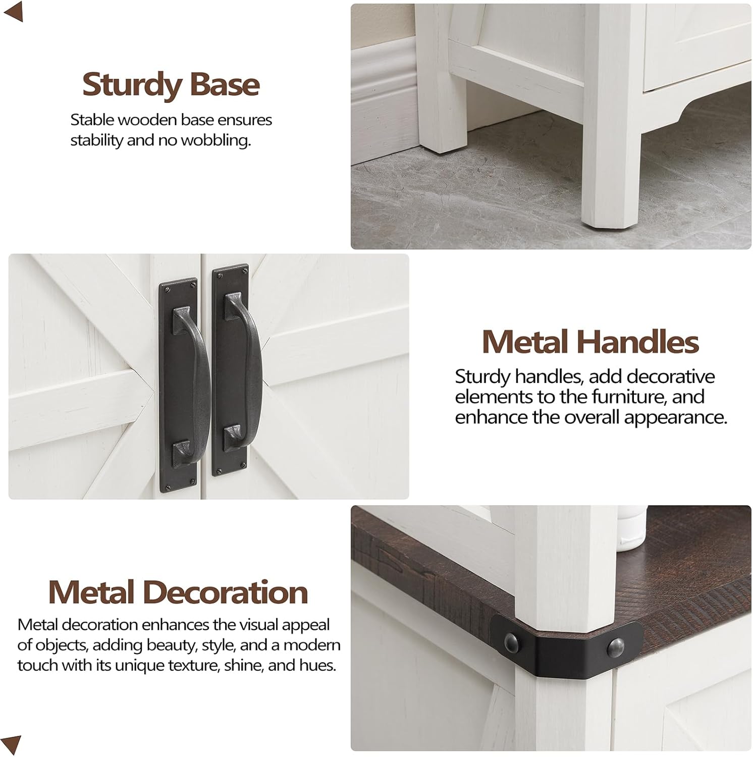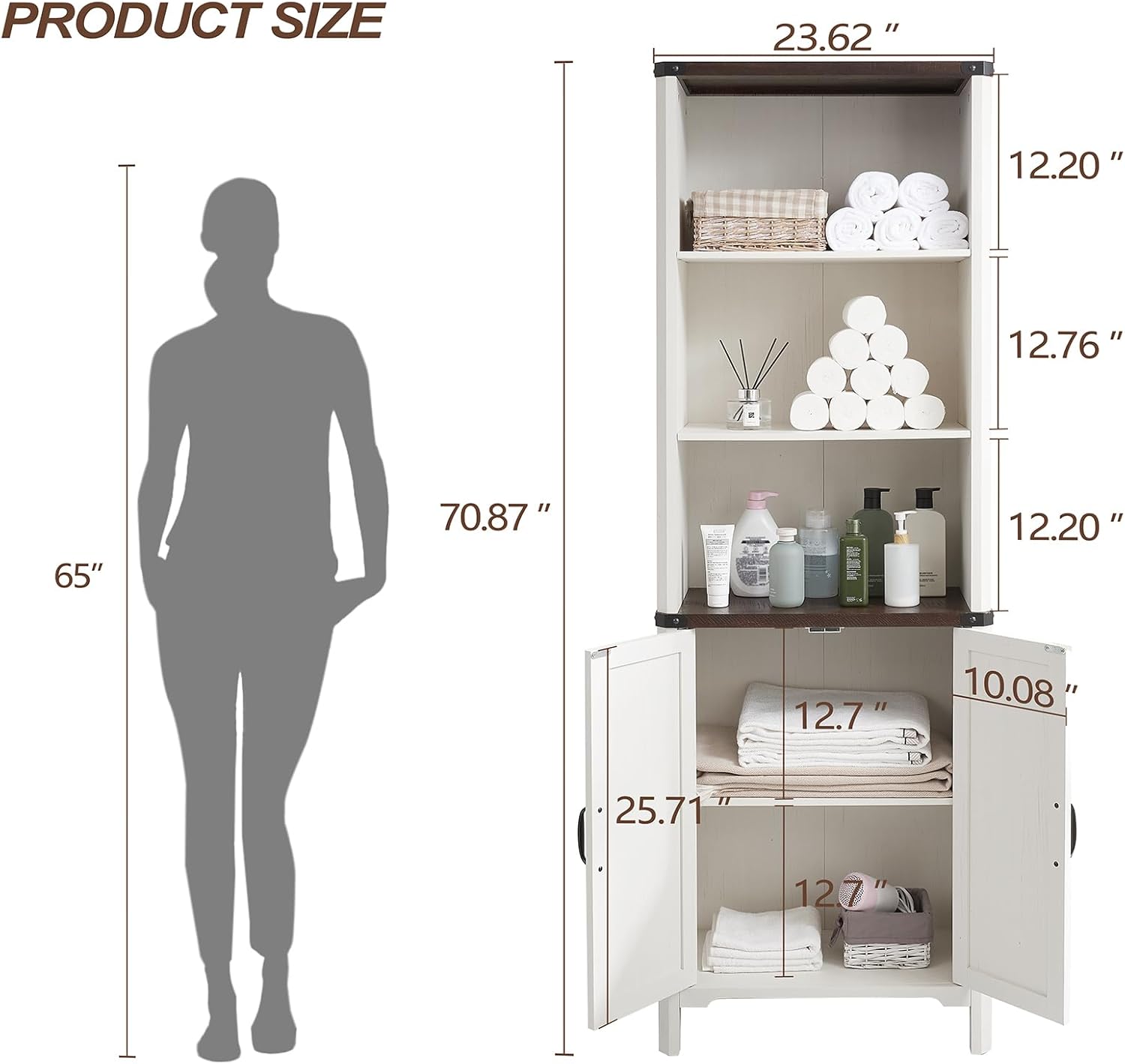 70.87 Tall Bathroom Storage Cabinet, Farmhouse Storage Cabinet with 2 Barn Doors and Adjustable Shelves, Bathroom Organizer for Living Room, Entryway, Kitchen (Antique White)