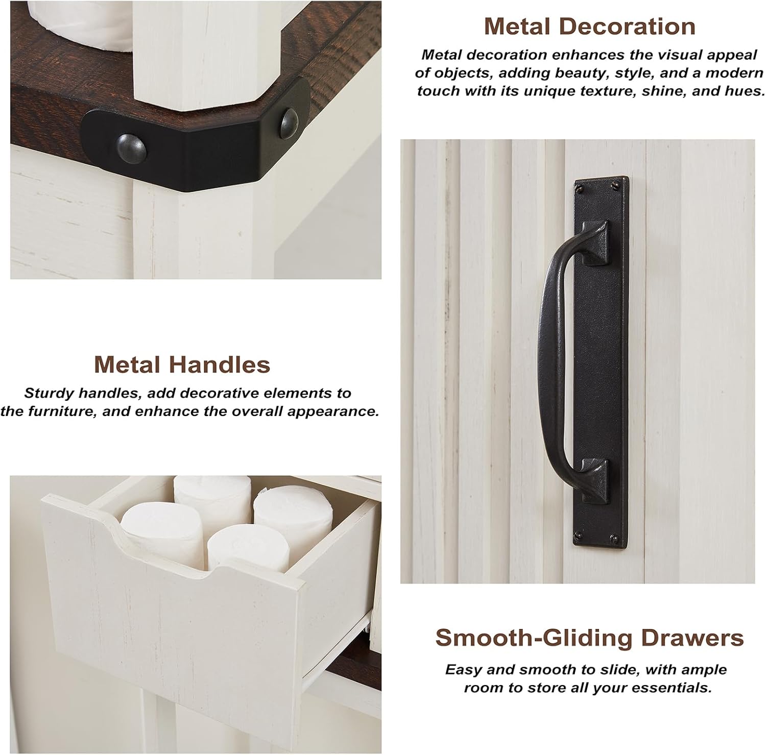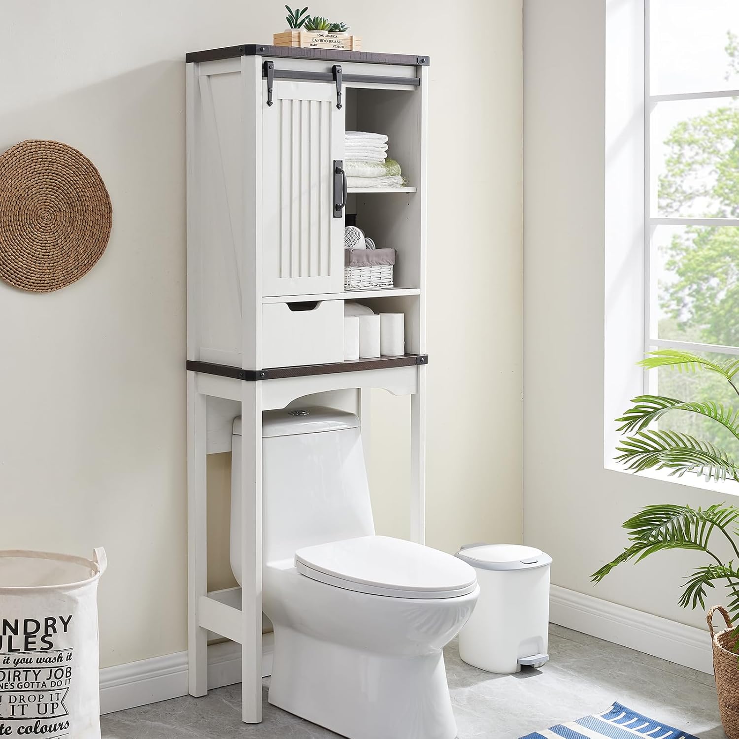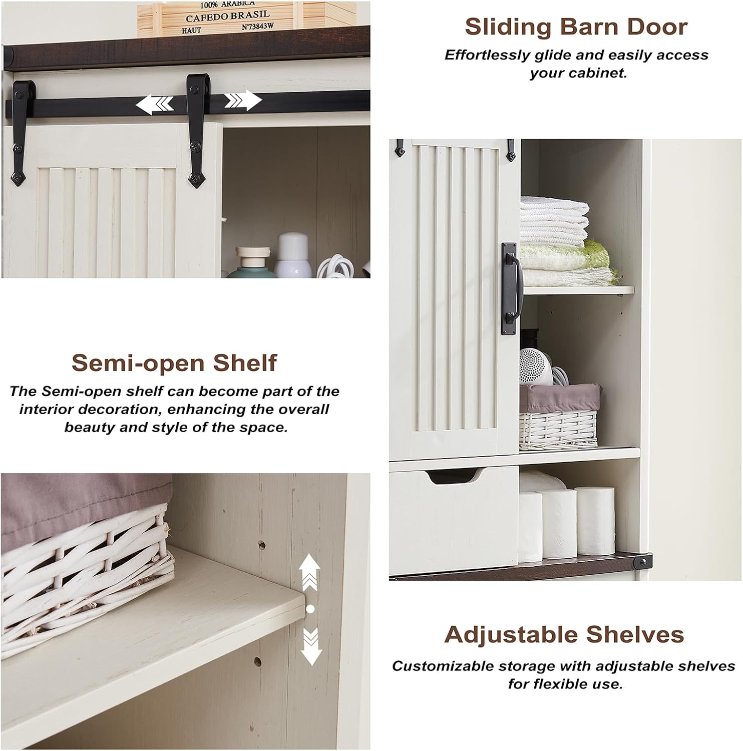 Over The Toilet Storage Cabinet, Farmhouse Storage Cabinet with Adjustable Shelves and Sliding Barn Door, Free Standing Over Toilet Bathroom Organizer (Antique White)