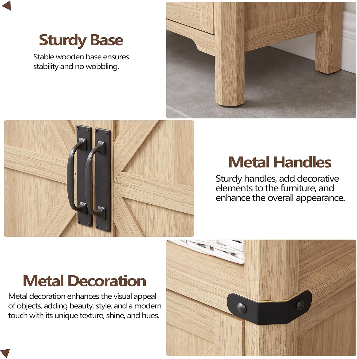 70.87 Tall Storage Cabinet, Farmhouse Storage Cabinet with 2 Barn Doors and Adjustable Shelves, Bathroom Organizer for Living Room, Entryway, Kitchen (Natural Oak)