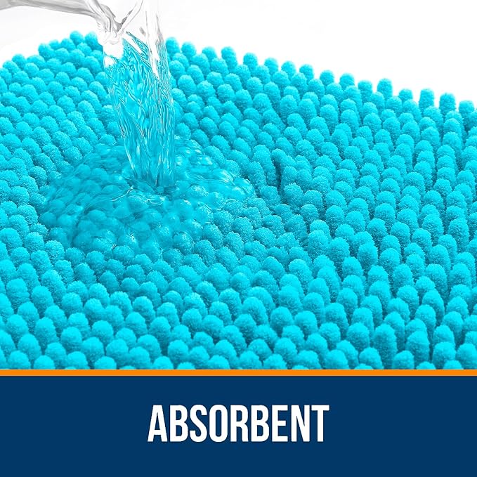 OLANLY Bathroom Rugs 24x16, Extra Soft Absorbent Chenille Bath Rugs, Rubber Backing Quick Dry, Machine Washable Bath Mats for Bathroom Floor, Tub and Shower, Home Decor Accessories, Aqua Sky