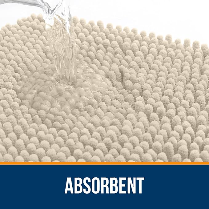 OLANLY Bathroom Rugs 36x24, Extra Soft Absorbent Chenille Bath Rugs, Rubber Backing Quick Dry, Machine Washable Bath Mats for Bathroom Floor, Tub and Shower, Home Decor Accessories, Sand