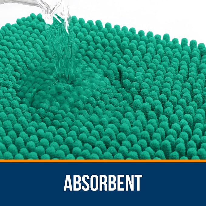 OLANLY Bathroom Rugs 36x24, Extra Soft Absorbent Chenille Bath Rugs, Rubber Backing Quick Dry, Machine Washable Bath Mats for Bathroom Floor, Tub and Shower, Home Decor Accessories, Emerald