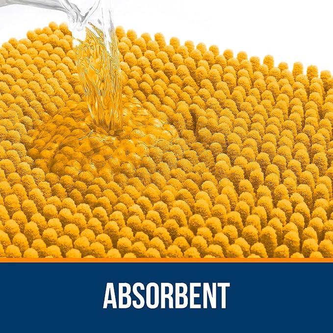 OLANLY Bathroom Rugs 30x20, Extra Soft Absorbent Chenille Bath Rugs, Rubber Backing Quick Dry, Machine Washable Bath Mats for Bathroom Floor, Tub and Shower, Home Decor Accessories, Golden Yellow