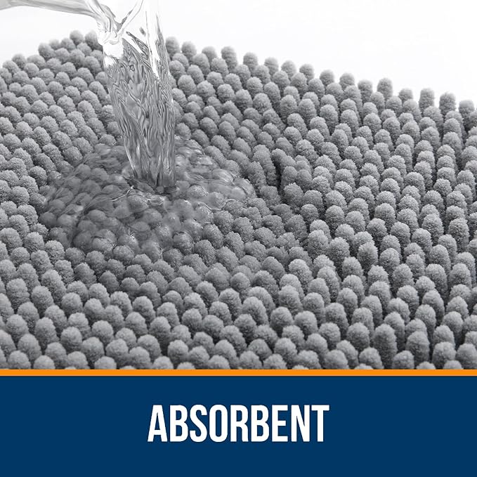 OLANLY Bathroom Rugs 40x24, Extra Soft Absorbent Chenille Bath Rugs, Rubber Backing Quick Dry, Machine Washable Bath Mats for Bathroom Floor, Tub and Shower, Home Decor Accessories, Grey