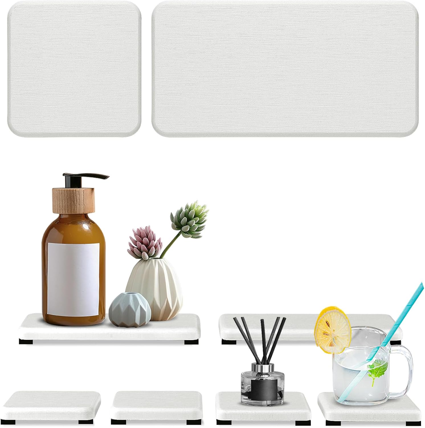 - Multipurpose --- You can use the fast drying stone tray as hand soap dish, bar coasters, dish washing sponges trays, makeup bottles coasters, cosmetic bottles soap bottles tray, drink coaster, or anywhere you need to quickly absorb water and keep the surface of the countertop dry. These quick dry stone sink tray are perfectly designed for modern homes, making life clean, comfortable, and orderly.
