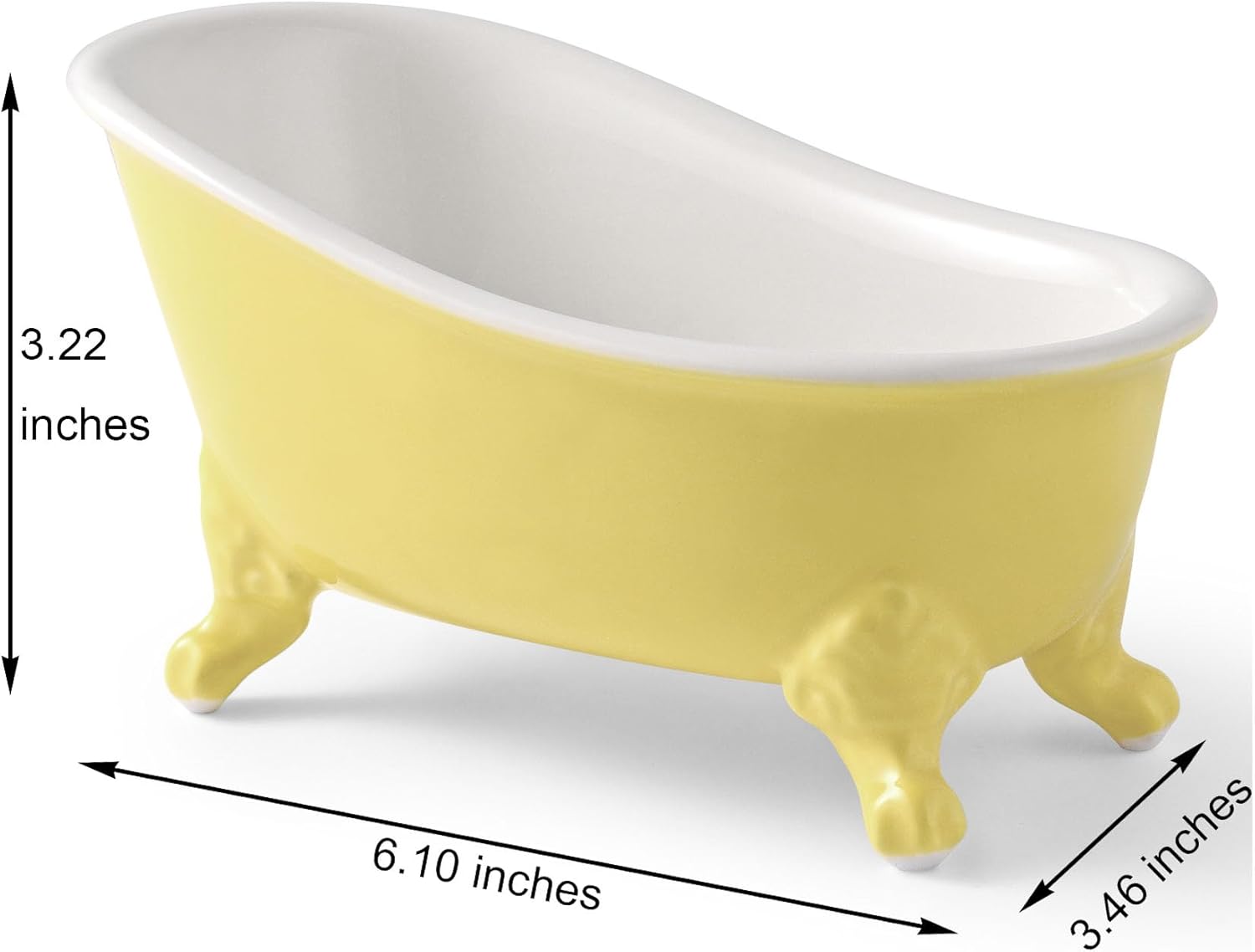 6.1" Vintage Ceramic Mini Decorative Clawfoot Bathtub Bar Soap Dish, Kitchen Sponge Holder and Shower Tray for Bathroom, 1 Pack (Yellow)