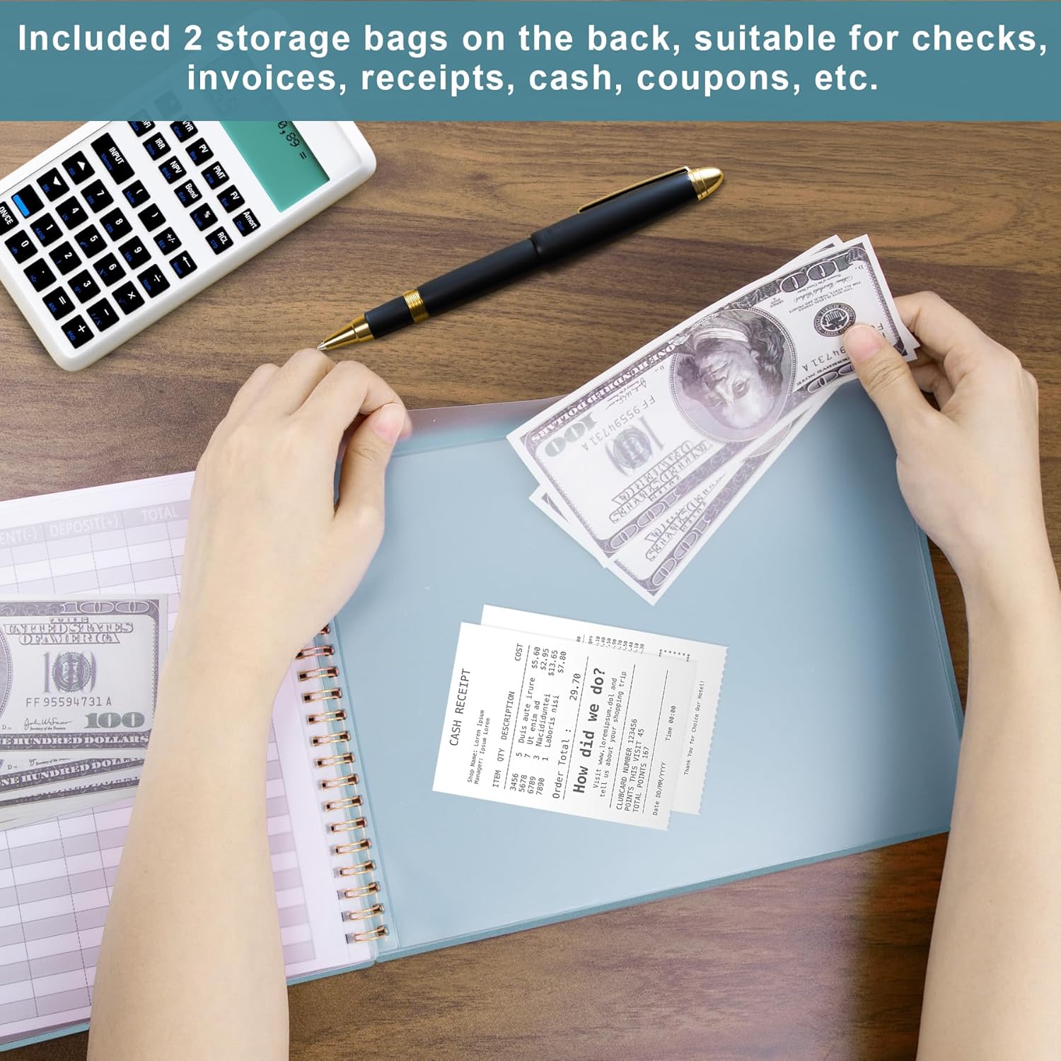 - Portable size, record expenses anytime with ample inner space for transaction details: YEAR, NO., DATE, DESCRIPTION, ACCOUNT, PAYMENT(-), DEPOSIT(+), TOTAL, ✔ , analyze expenses, prepare accurate statements