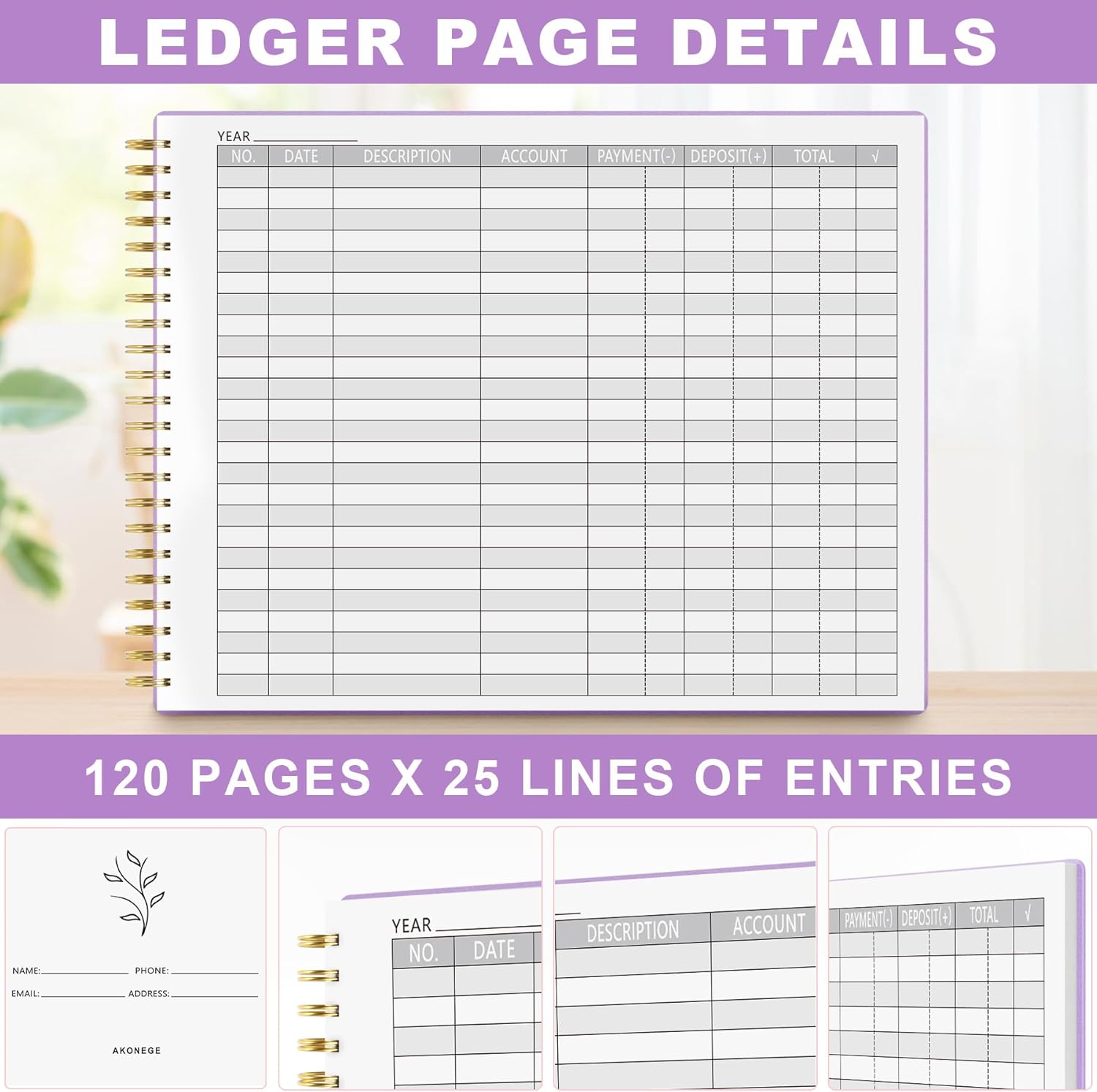 - With its clear and concise format, the AKONEGE accounting ledger book is easy to use, even for those with limited experience in bookkeeping or accounting; As a gift for Birthday, Easter, Valentine's Day, Halloween, Thanksgiving, Christmas, Back to school and New Year's Day