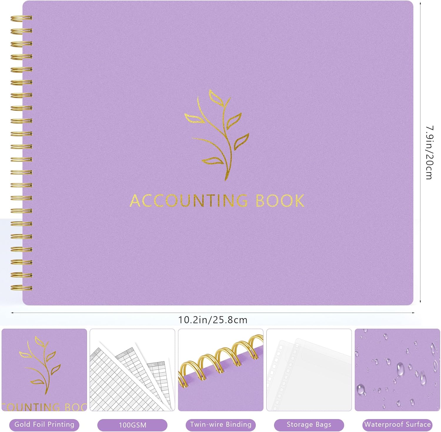 Accounting Ledger Book for Small Business Bookkeeping & Personal Use, Horizontal Expense Tracker Notebook for Family Budget, Bookkeeping Record Book Money Expense & Income Log Journal, Purple
