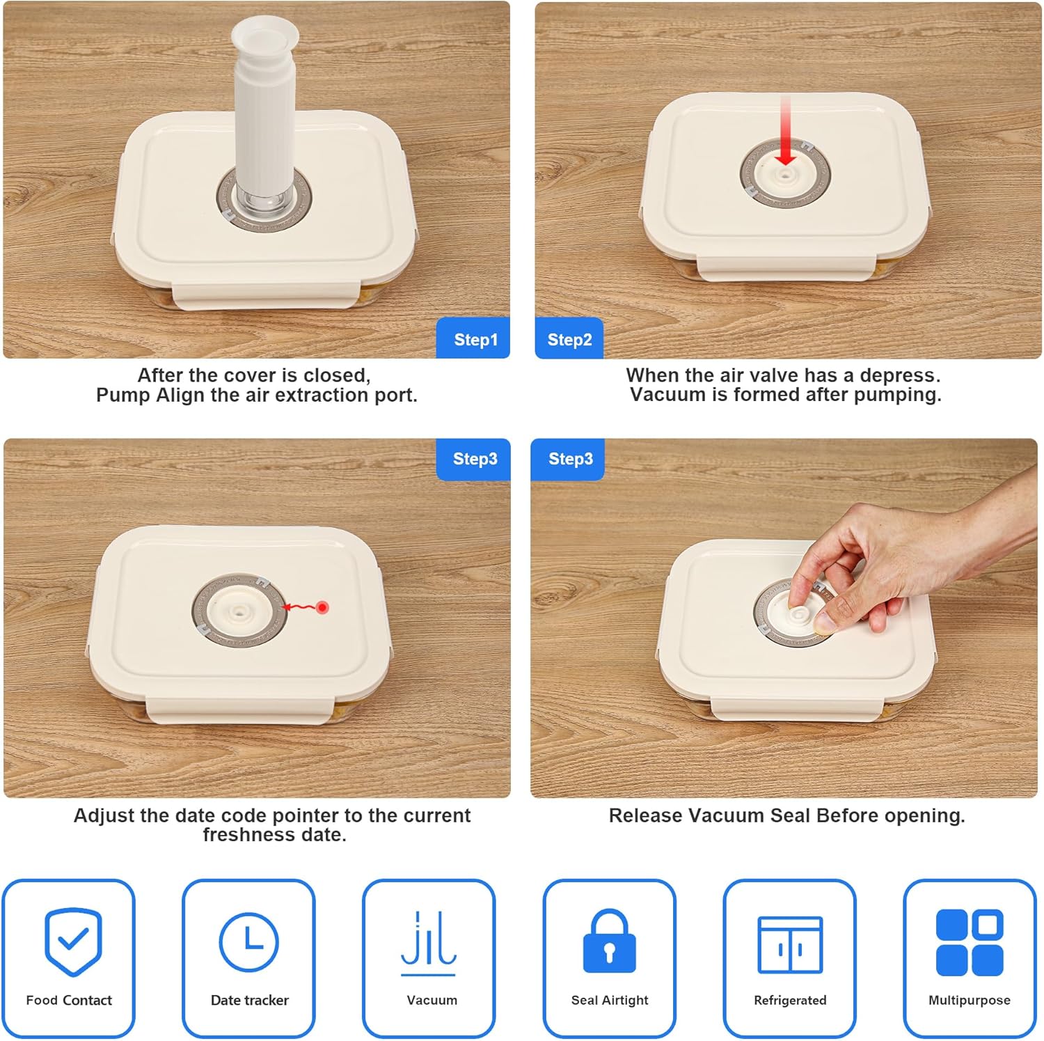 - 【KEEP FRESH UP TO 5X LONGER】The Cabibox Vacuum Container is different from ordinary glass meal prep containers. Quick & Easy Vacuum Sealing by the manual pump to remove CO2 and H2O. Stays vacuum-sealed for months, keeping food fresh 5X longer.