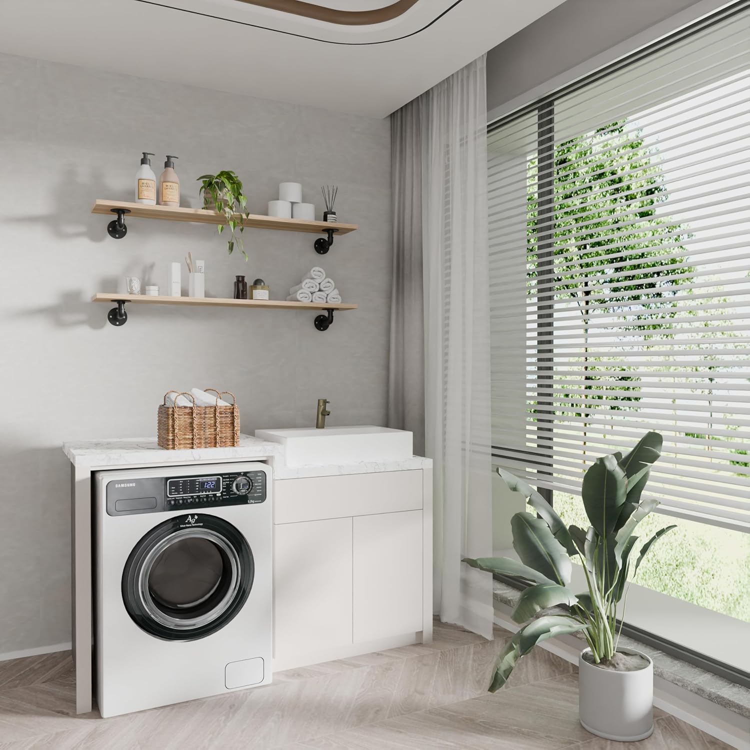 - Widely use:The unique American industrial style will bring a bright color to your home.This kitchen floating shelves is suitable for Entryway,Foyer,living room, bathroom, bedroom, coffee bar, wine bar, toilet, laundry room, garage & farmhouse,Balcony plant shelfc
