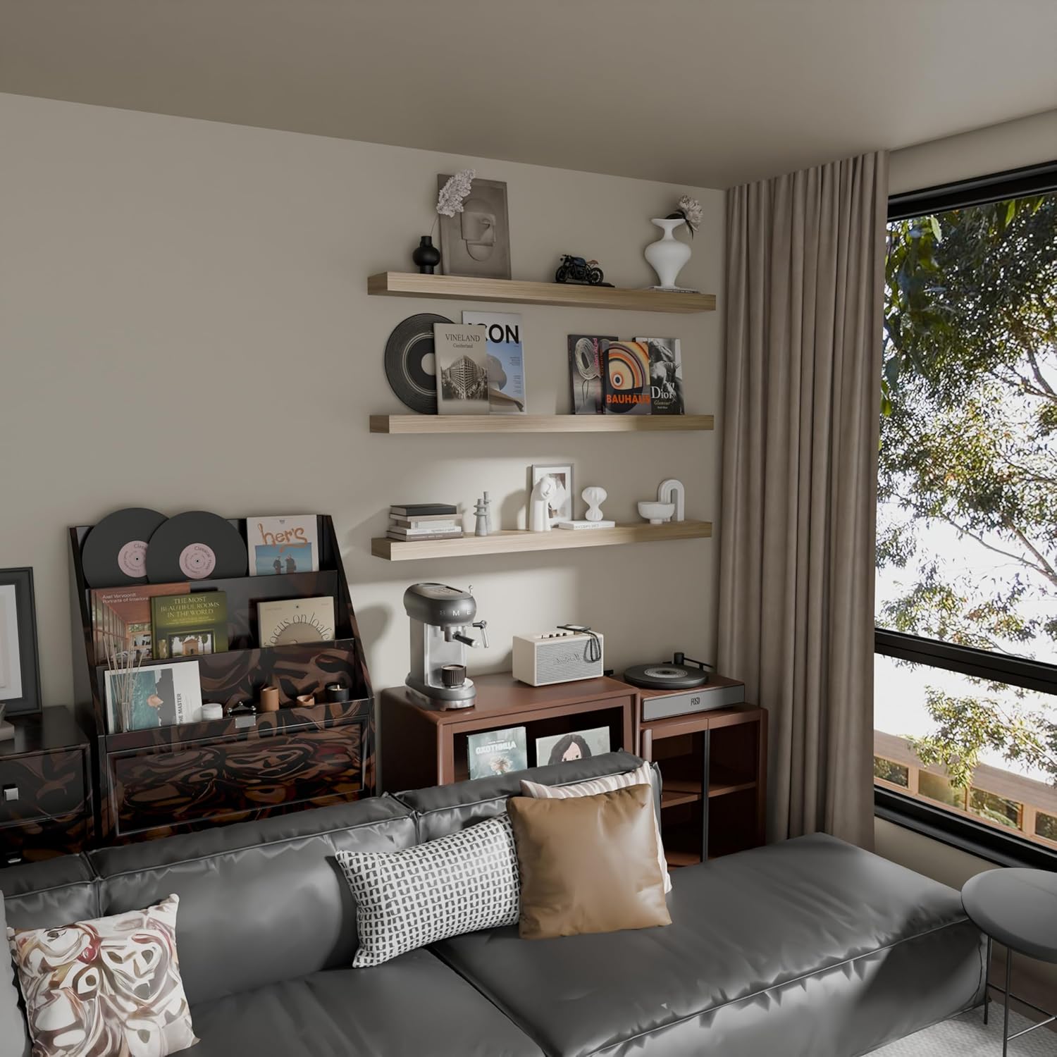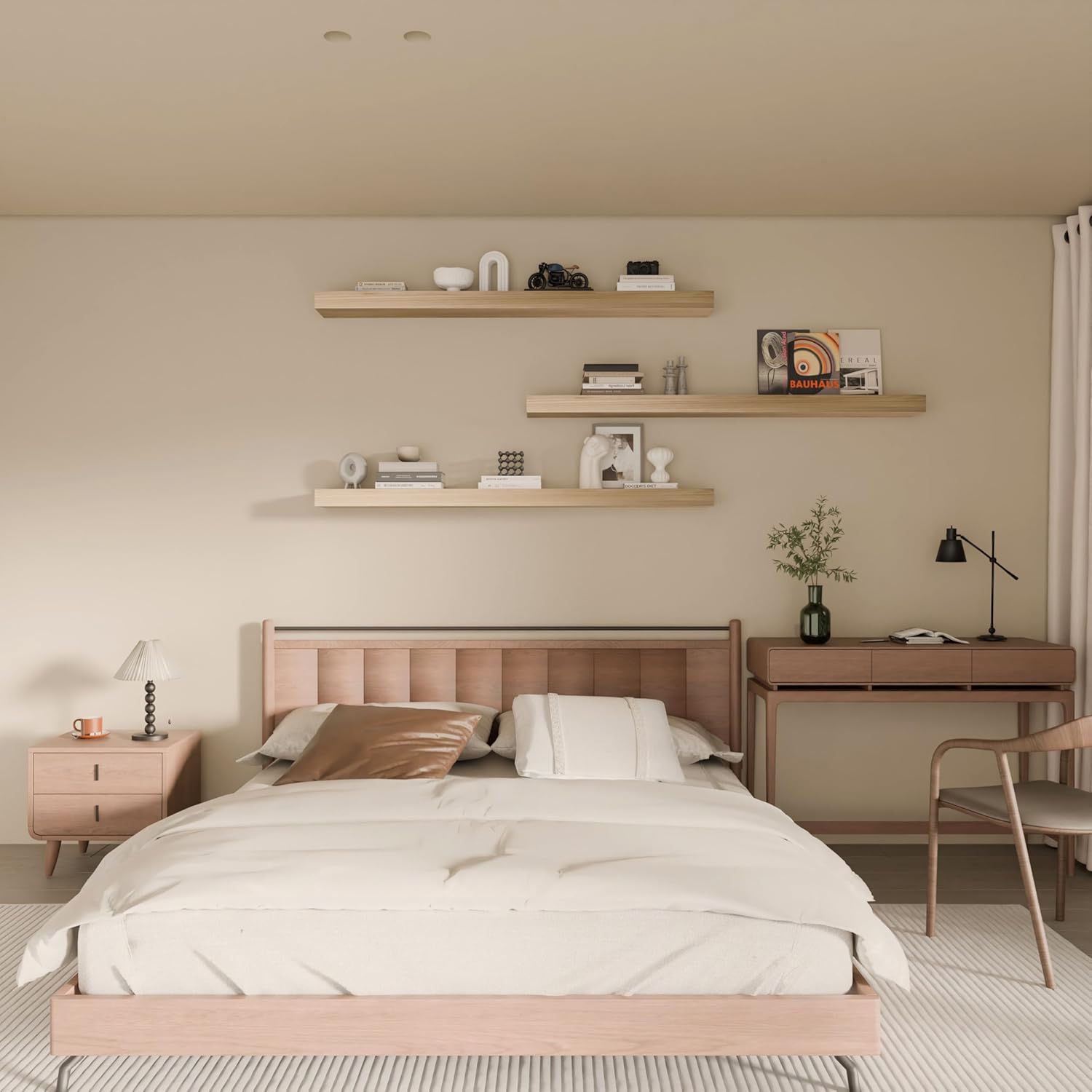 - 【Multifunctional Decorative Shelves】Upgrade your space with our shelves for room wall, perfect as wall mount shelf and wall shelves for bedroom. These versatile shelves serve multiple functions, ideal for displaying books, plants, photos, and more, adding both style and utility to your home. The sleek design ensures they fit seamlessly into any room's decor, from living areas to offices