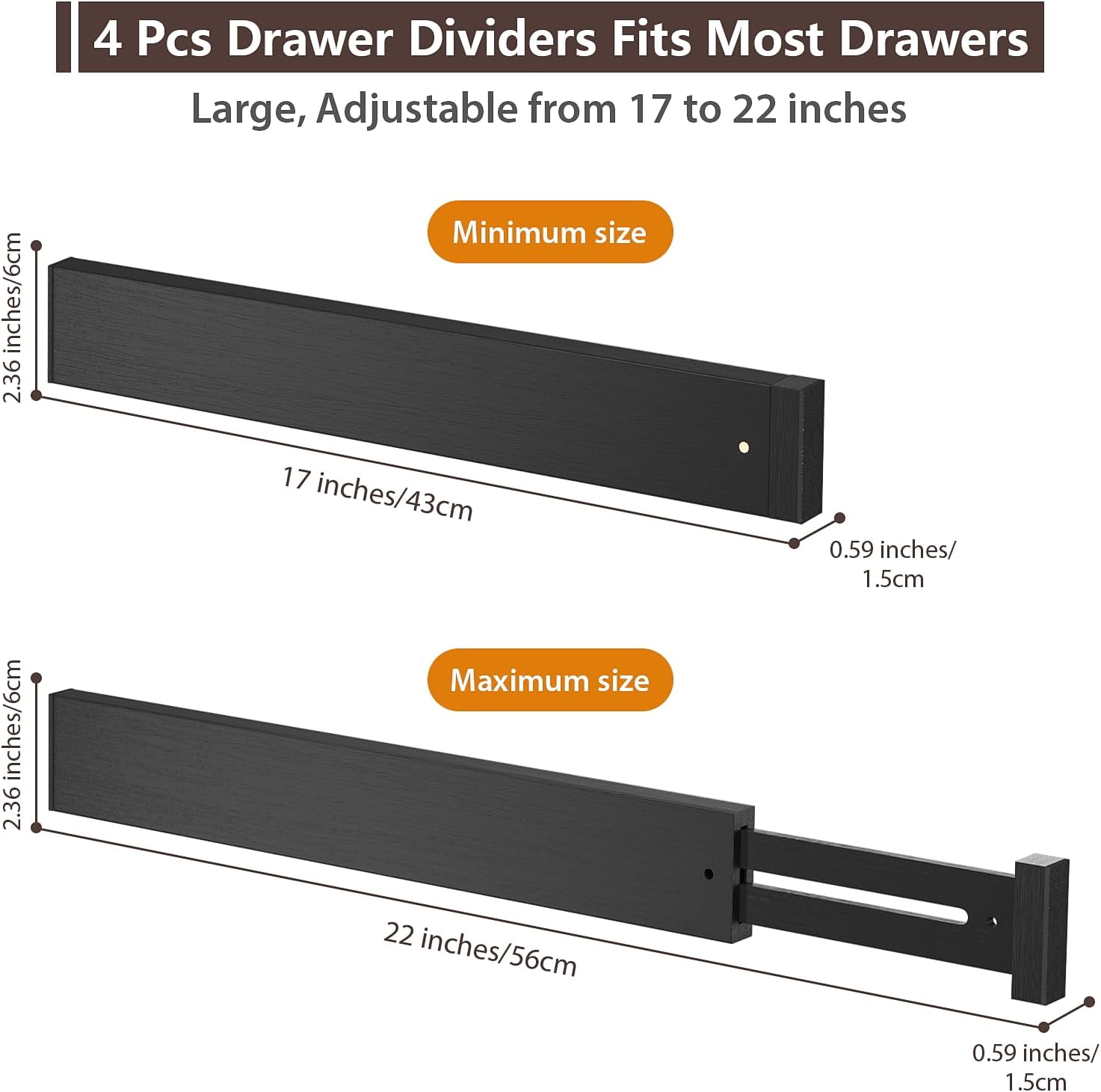 4 PCS Drawer Divider, 17"-22" Adjustable Bamboo Drawer Dividers Organizers, Expandable Separators for Kitchen, Clothes, Dressers, Home, Office, Black