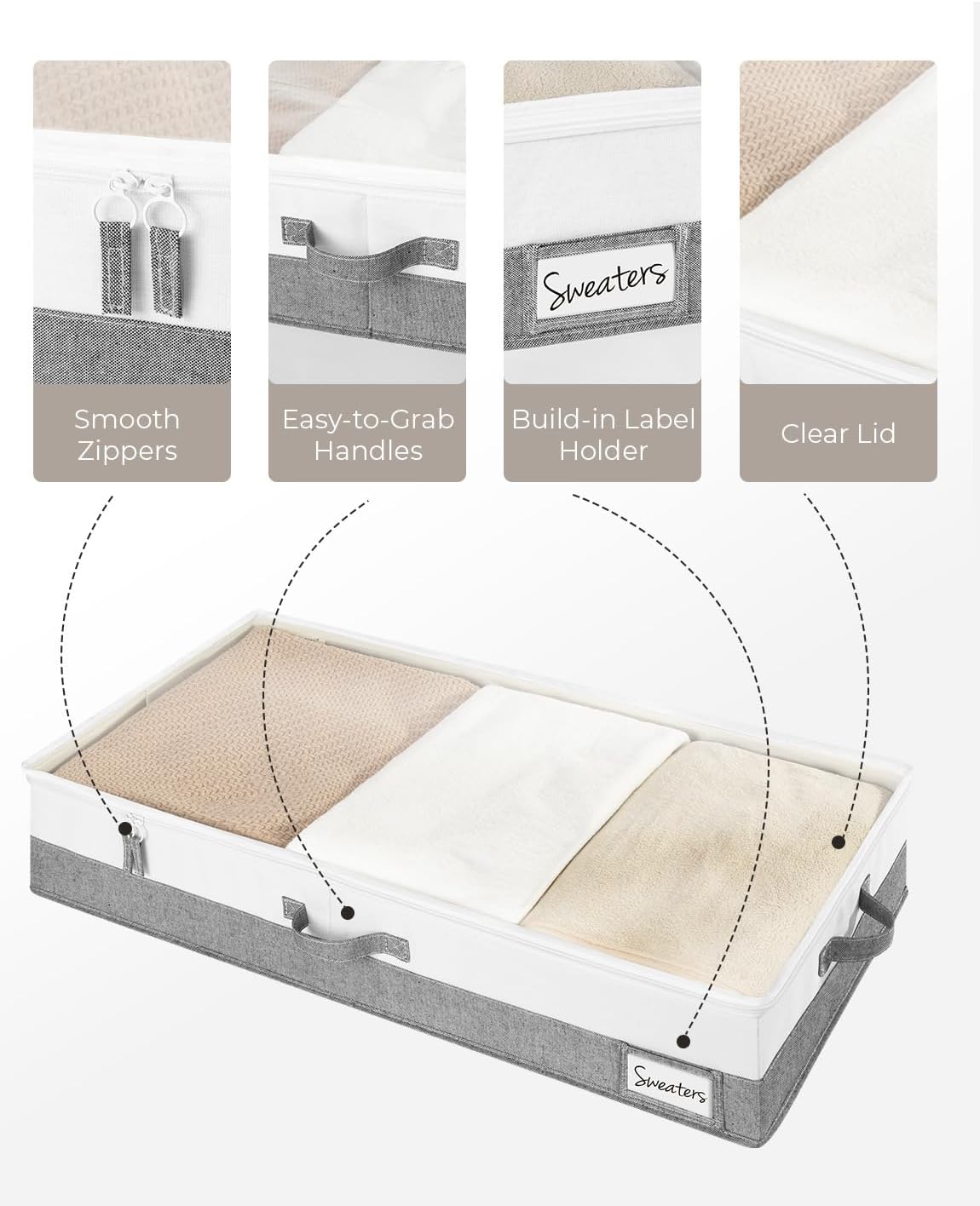 StorageWorks Large Under Bed Storage Containers with Handles and Label Holder, 2 Pack Ultra-thick Fabric Underbed Bins, Closet Organizer for Clothes, Blankets, Sweater