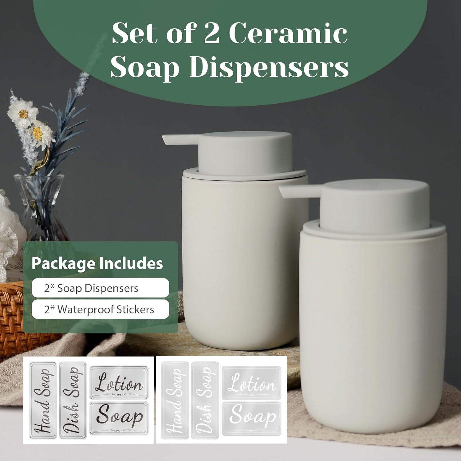 - Functional Foam Soap Dispenser: Crafted from high-quality ceramic, these kitchen soap dispenser set for kitchen sink or bathroom are built to last. The ceramic material resists fading, making them reliable choices for daily use