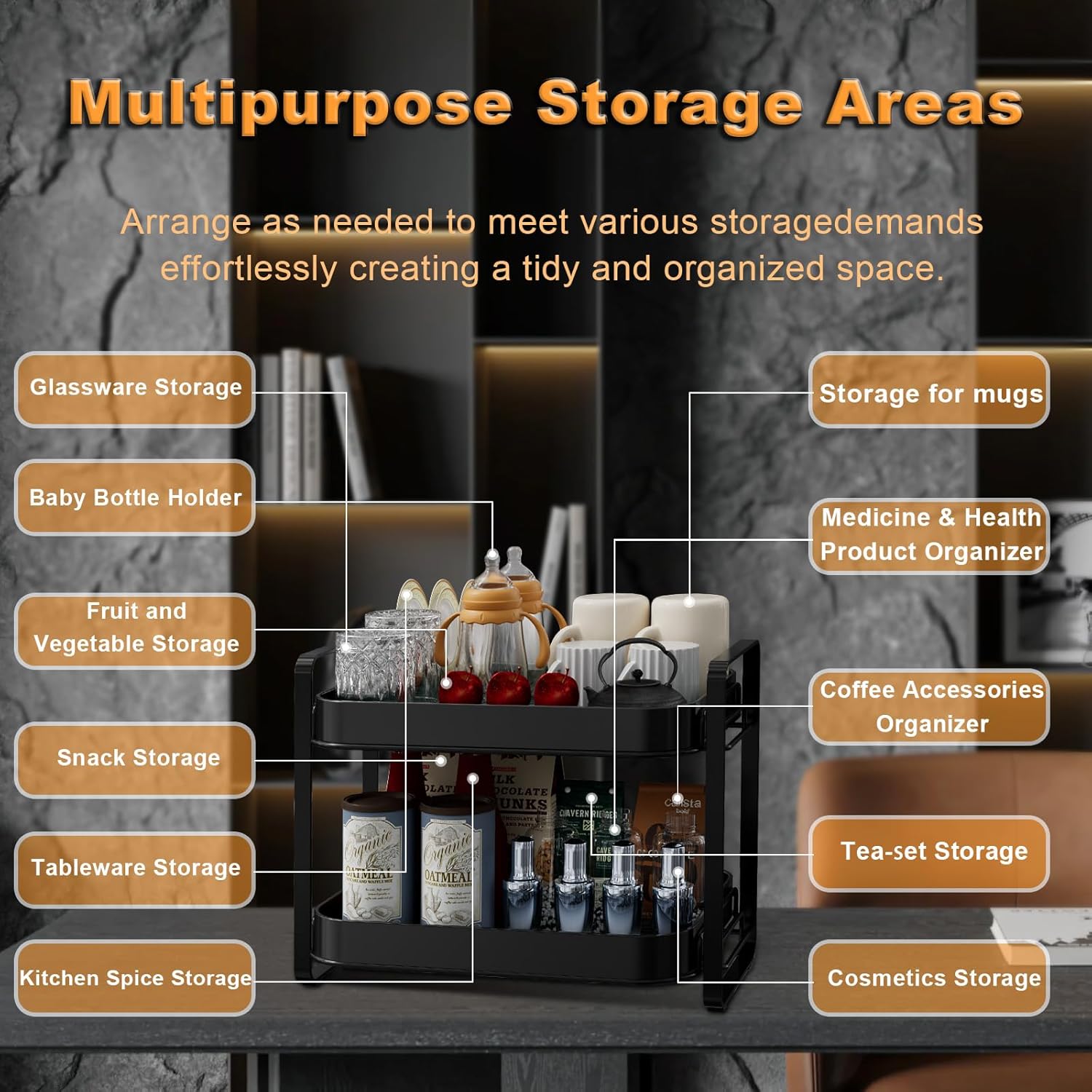 - Outstanding Coffee Bar Organizer: The PXPUIQ 2-Tier Mug Holder Rack is an exceptional coffee station organizer that effectively meets all your needs for organizing your coffee bar. This multifunctional coffee mug holder provides ample space for coffee bar accessories, ensuring a neat arrangement of coffee mugs and glassware. Transform your coffee time into a stylish experience with this efficient cup drying rack