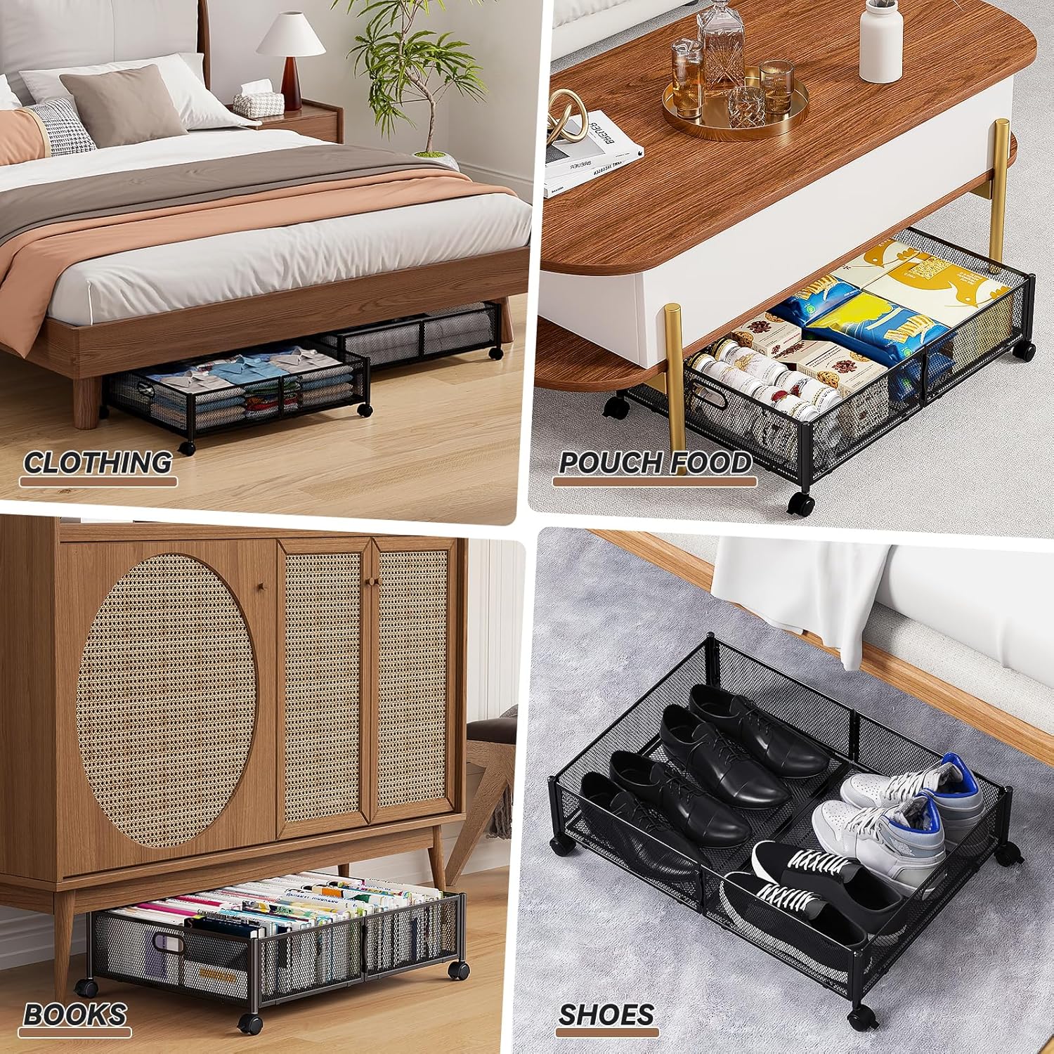 - [Wide Application] It's great for seasonal under bed clothes storage, under bed shoe storage, bedding storage and more. Due to the rolling design, it can also be used as under bed drawers on wheels. Buy 2 PACK to make your tiny space a new look!