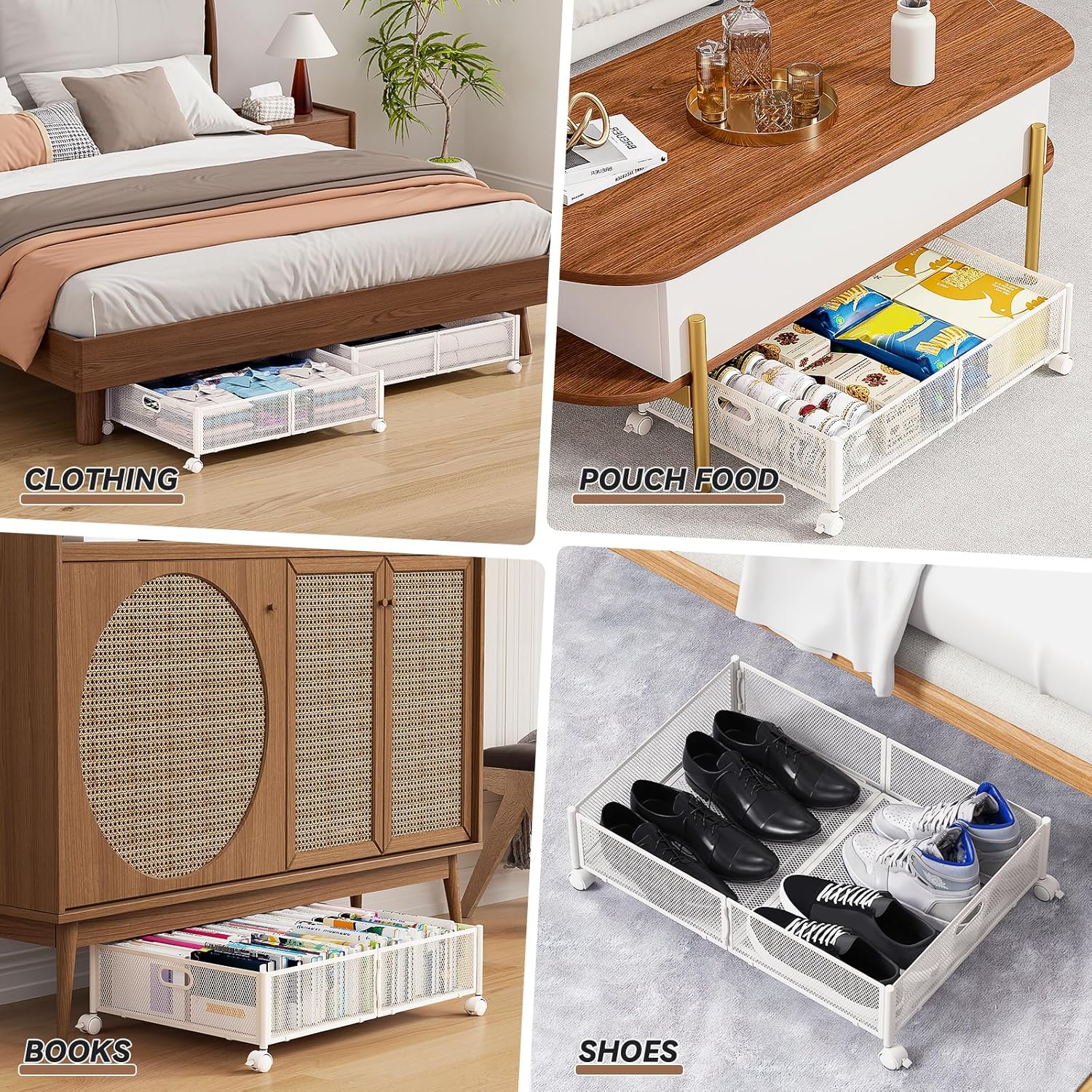 - [Wide Application] It's great for seasonal under bed clothes storage, under bed shoe storage, bedding storage and more. Due to the rolling design, it can also be used as under bed drawers on wheels. Buy 2 PACK to make your tiny space a new look!