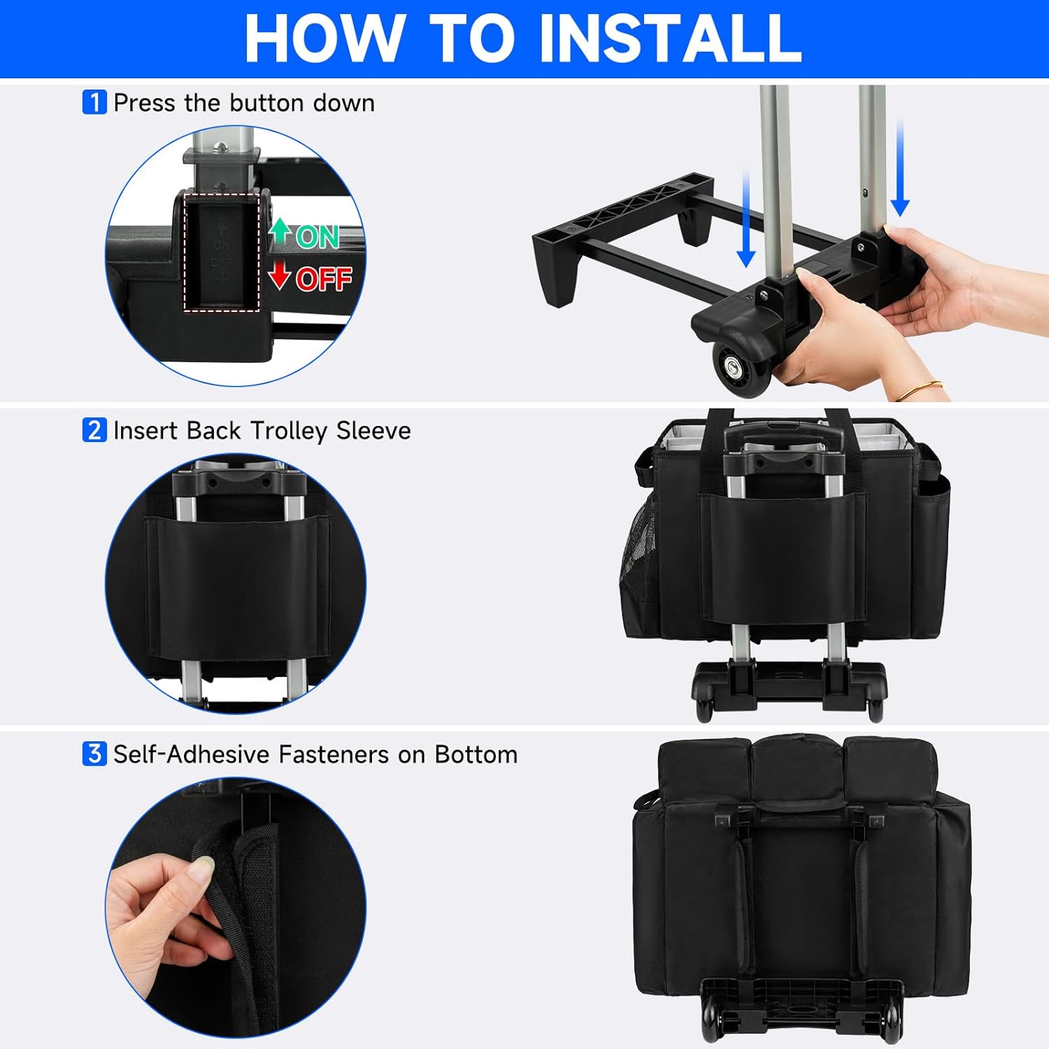 - Fourr Ways To Carry: The trolley of this rolling cleaning caddy Bag is removable, freely adjustable in height, and can be folded and stored away when not in use. It is also designed with a comfortable carrying handle, two side carry handles and a removable shoulder strap for easy carrying, making your cleaning job easier