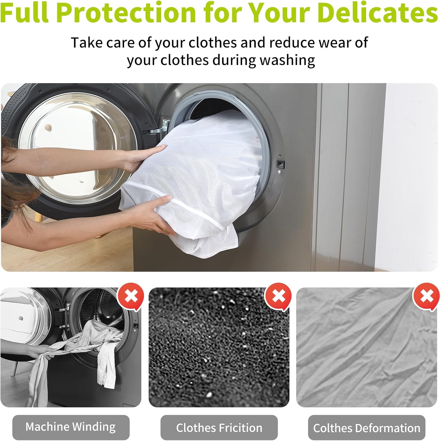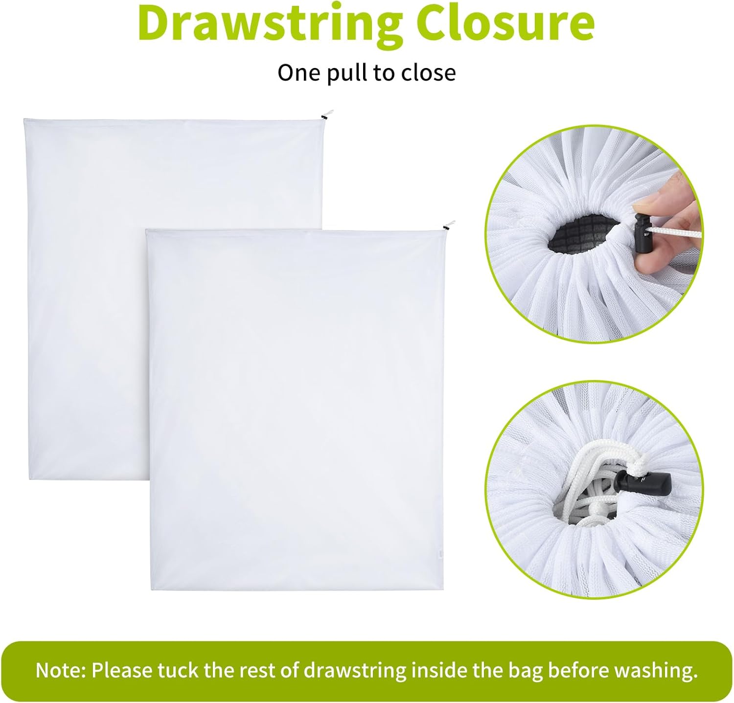 - Durable& Breathable: The extra large mesh laundry bags are made of tear-resistant and breathable polyester, ensuring long-lasting performance. Ultra soft and fine mesh allows water and detergent to get through with no snagging. Reinforced stitches ensure that it won't break after loaded or prolonged use.