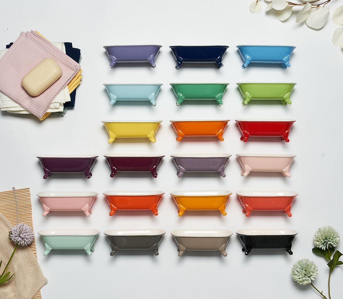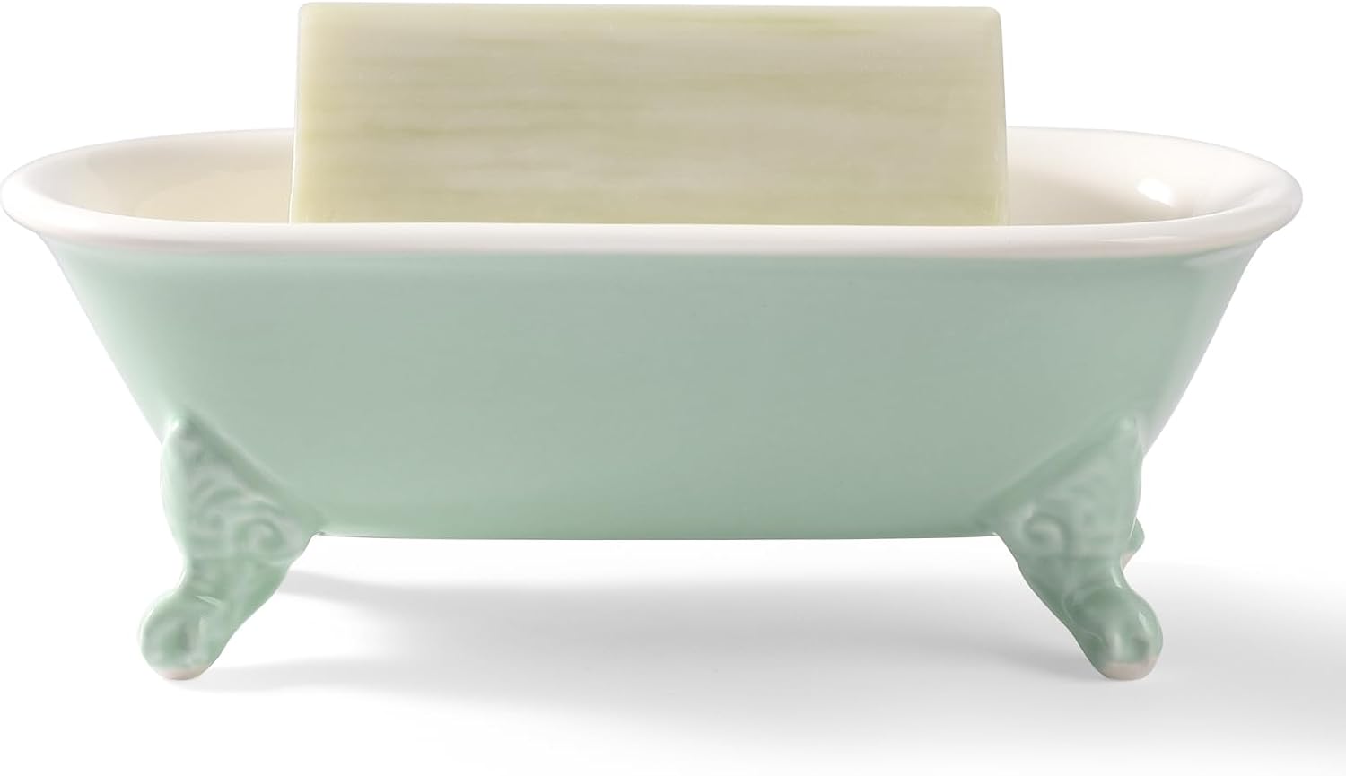 - Style: This ceramic soap dish is inspired by a vintage claw-foot bathtub and features a distressed white modern finish with two tone colors. this soap dish will fit perfectly in any bathroom sink or kitchen countertop.