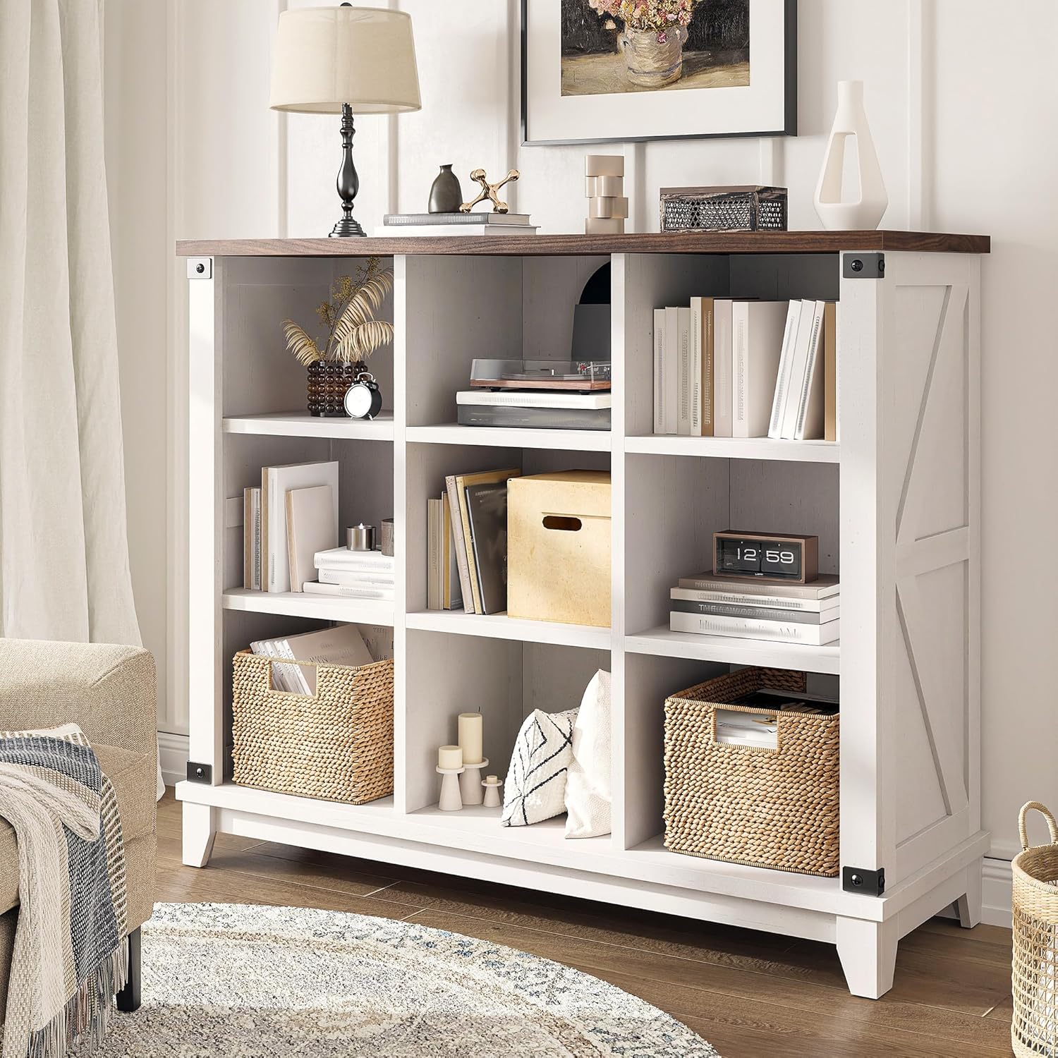 - 【37.5"W×11.8"D×38.5"H 9 Cube Storage Organizer】Cubes storage Bookcase is the optimal solution for anyone seeking to streamline their home organization. With 9 cubes and a width of 37.5"W×11.8"D×38.5"H, it provides more storage space than you can imagine. Store all your books, framed photos, storage baskets, potted plants, boxes, sculptures, clocks, TVs of the appropriate width, and decorative items in one place! This organized and well-organized environment eliminates clutter and makes your home look amazing. This product is ideal for any room in your home. Use it in your living room, bedroom or office to store books, decorations, and other items.