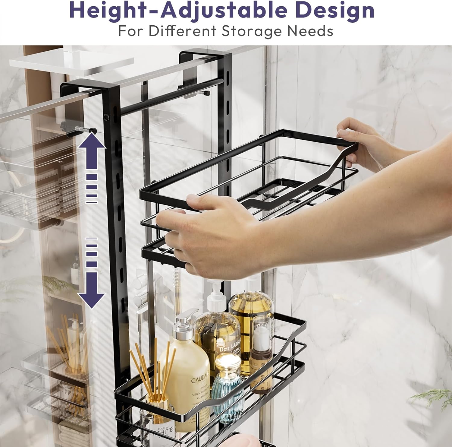 - [Height-Adjustable Design]: Rust proof shower caddy over the door features a versatile three-tier design with adjustable spacing between baskets, over the door bathroom organizer customizes the height of each tier to suit your needs, whether it’s for tall bottles or easy access to soap