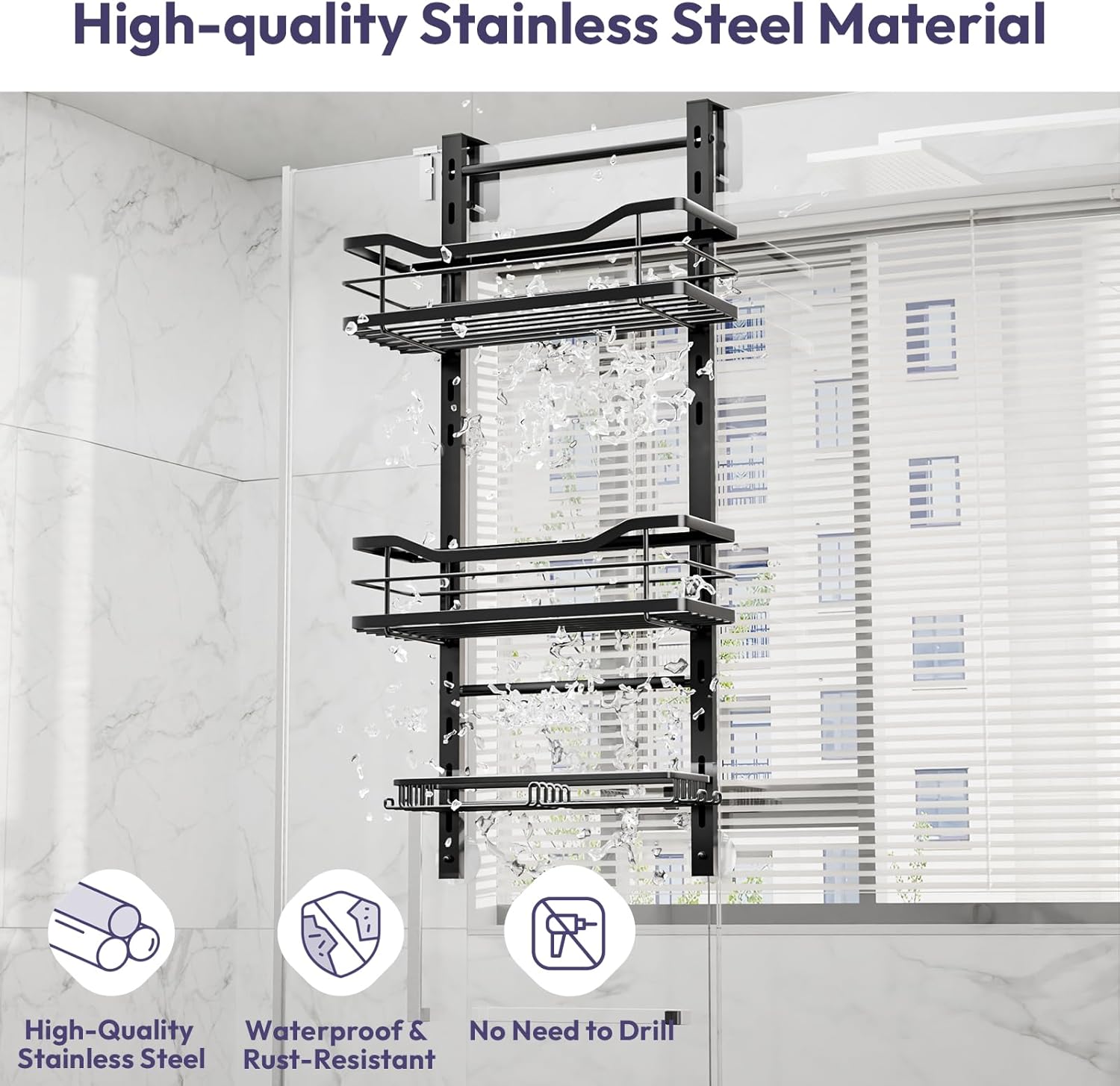 - [Durable and Rust-Resistant Construction]: over the door organizer bathroom is made from high-quality stainless steel, this hanging shower caddy over door resists rust and wear. Built to withstand the humid environment, this shower racks for inside shower hanging ensures long-lasting durability and reliable storage for years