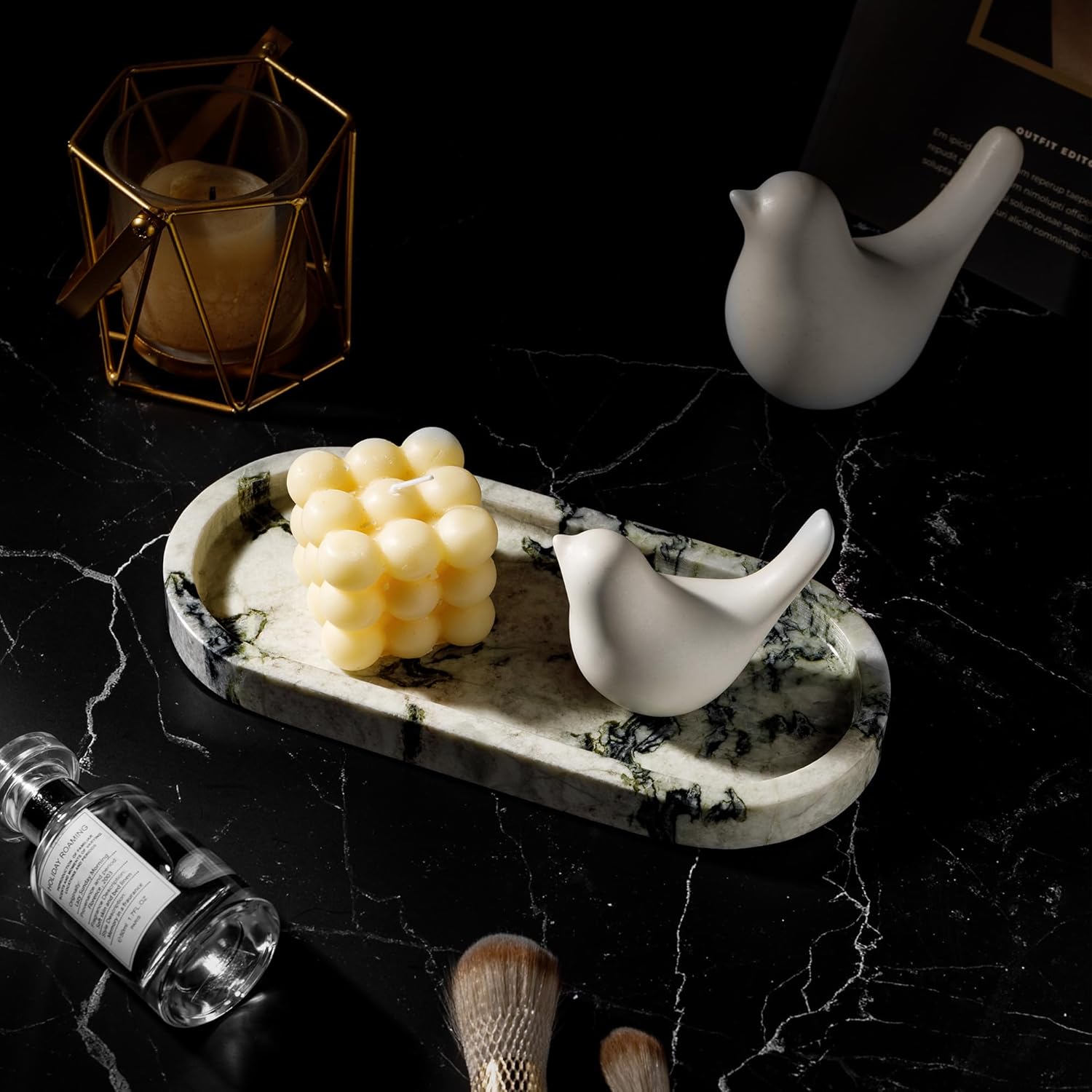 - Sturdy and Easy to Maintain: Made from true natural marble, our vanity tray is waterproof, oil-resistant, and scratch-resistant. The polished finish enhances its robustness and makes cleaning effortless. Simply wipe clean with a damp cloth to keep it looking pristine