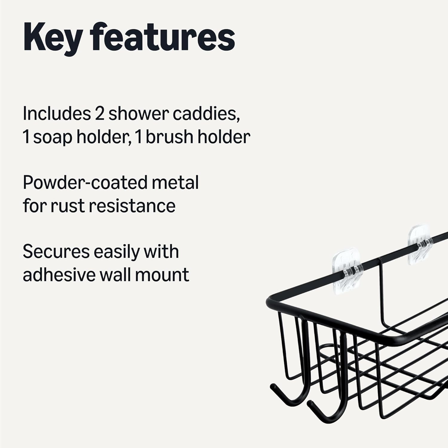 - IN THE BOX: Complete 5-piece set includes 2 shower caddies, 1 soap holder, and 1 brush holder for comprehensive bathroom organization