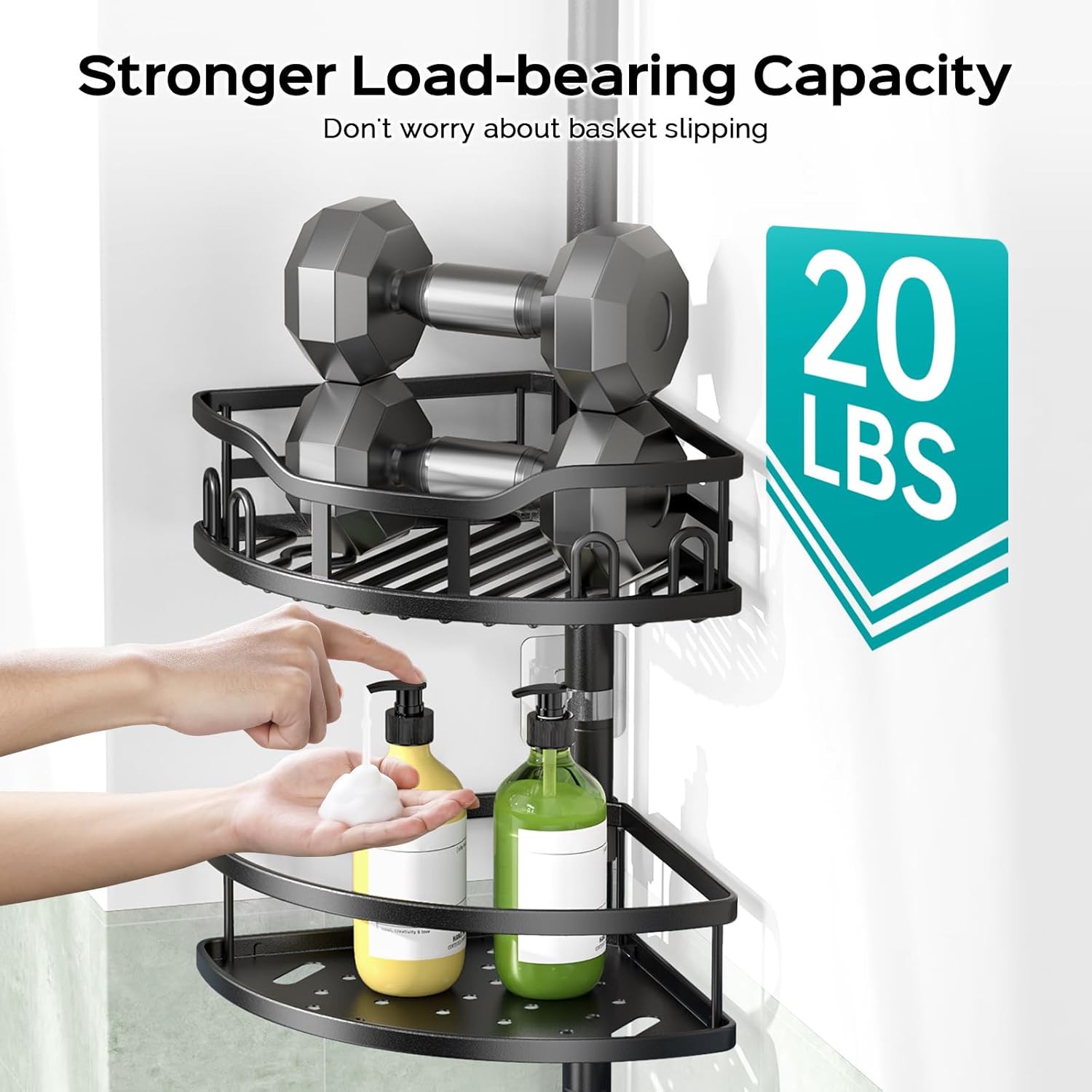 - RUST-RESISTANT STAINLESS STEEL: The shower caddy tension pole is made of premium stainless steel material, which is durable, rust-resistant, moisture-resistant, waterproof, and scratch-resistant, perfect for humid environments. Its hollow design ensures excellent ventilation and drainage, making it easy to clean. The corner shower caddy will be the most durable product you have ever used.