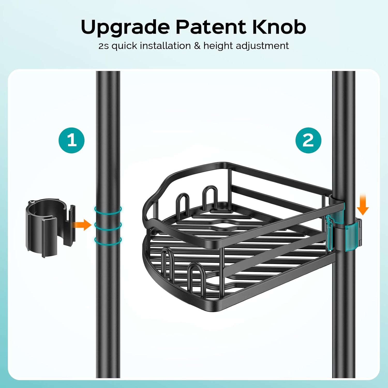 - QUICK INSTALLATION & ADJUSTABLE HEIGHT: This shower caddy features a convenient clip-on design for instant setup and quick height adjustment, saving time and effort while also preventing the tray from slipping. The integrated telescoping Pole has a built-in spring-loaded support, which can be flexibly adjusted, which is stable & non-tipping. The design of this stable structure significantly improves stability and safety.
