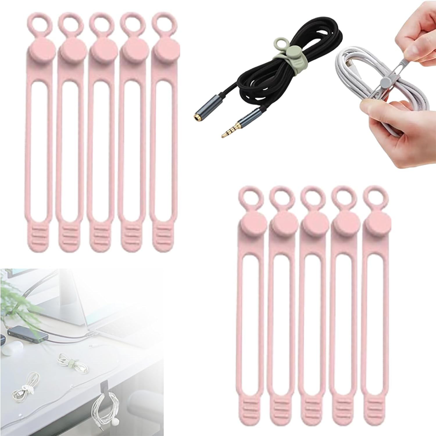 - Data Cable Organizer - Materials: Made of durable silicone, these cable ties are reusable silicone ties that provide a sustainable solution for organizing cables.