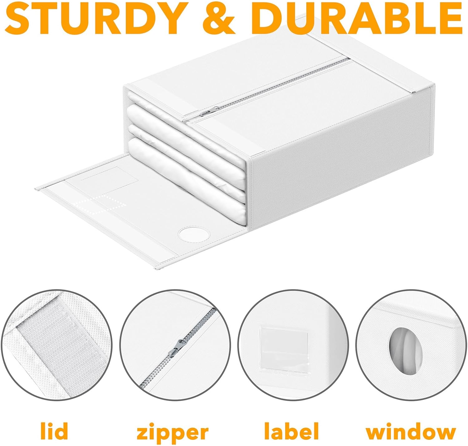 - EASY TO FOLD AND USE - Each foldable bedding sheet set organizer is super easy to use; You can fold your sheets first and put them in the center, then zip, close, label and finish