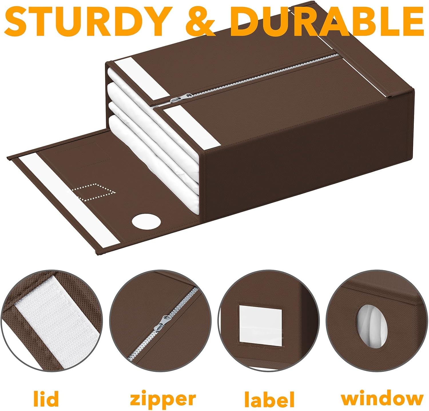 SpaceAid 3 Pack Bed Sheet Organizers and Storage, Foldable Sheet Organizer for Linen Closet, Sheets Set Folder Keeper with Window XL (Queen & King Size) Bedding Container (Brown, 3 Pack)