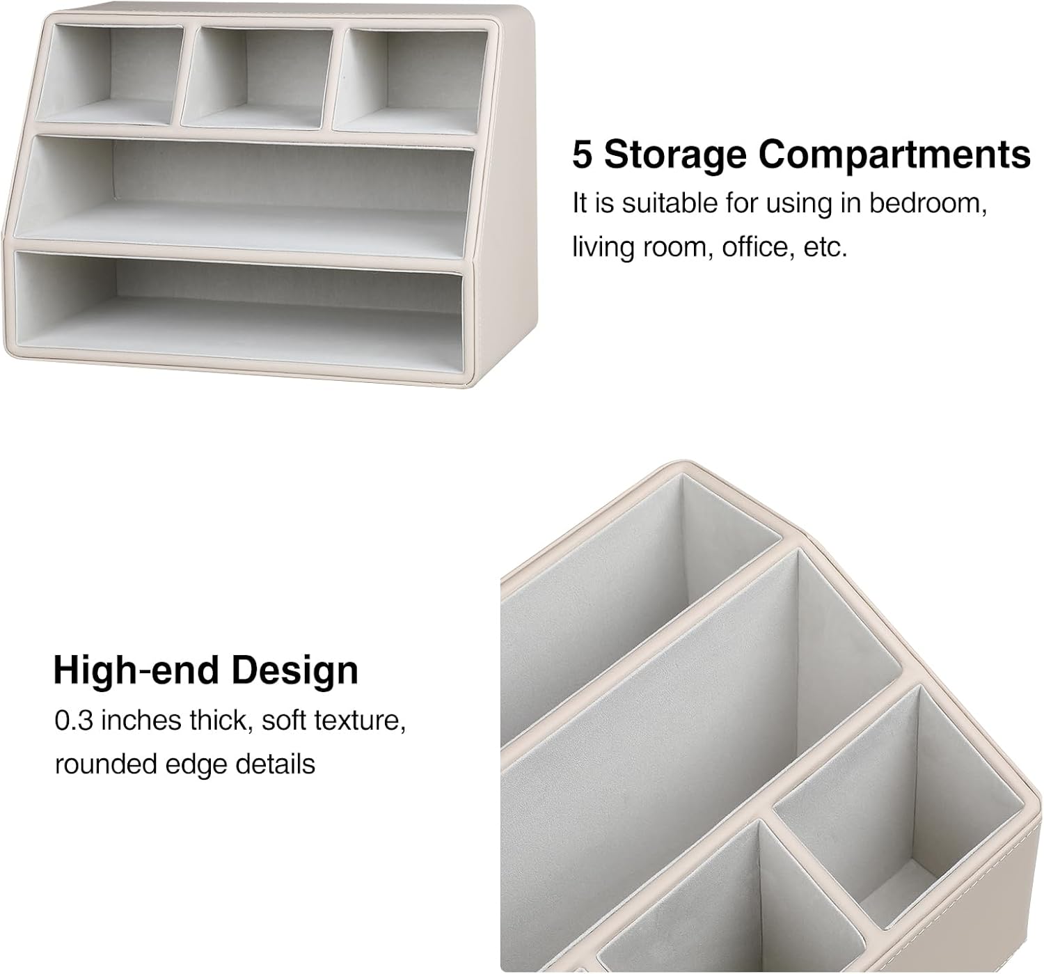- Table organizer materials: PU Leather + MDF + Flannel; Sturdy and textured